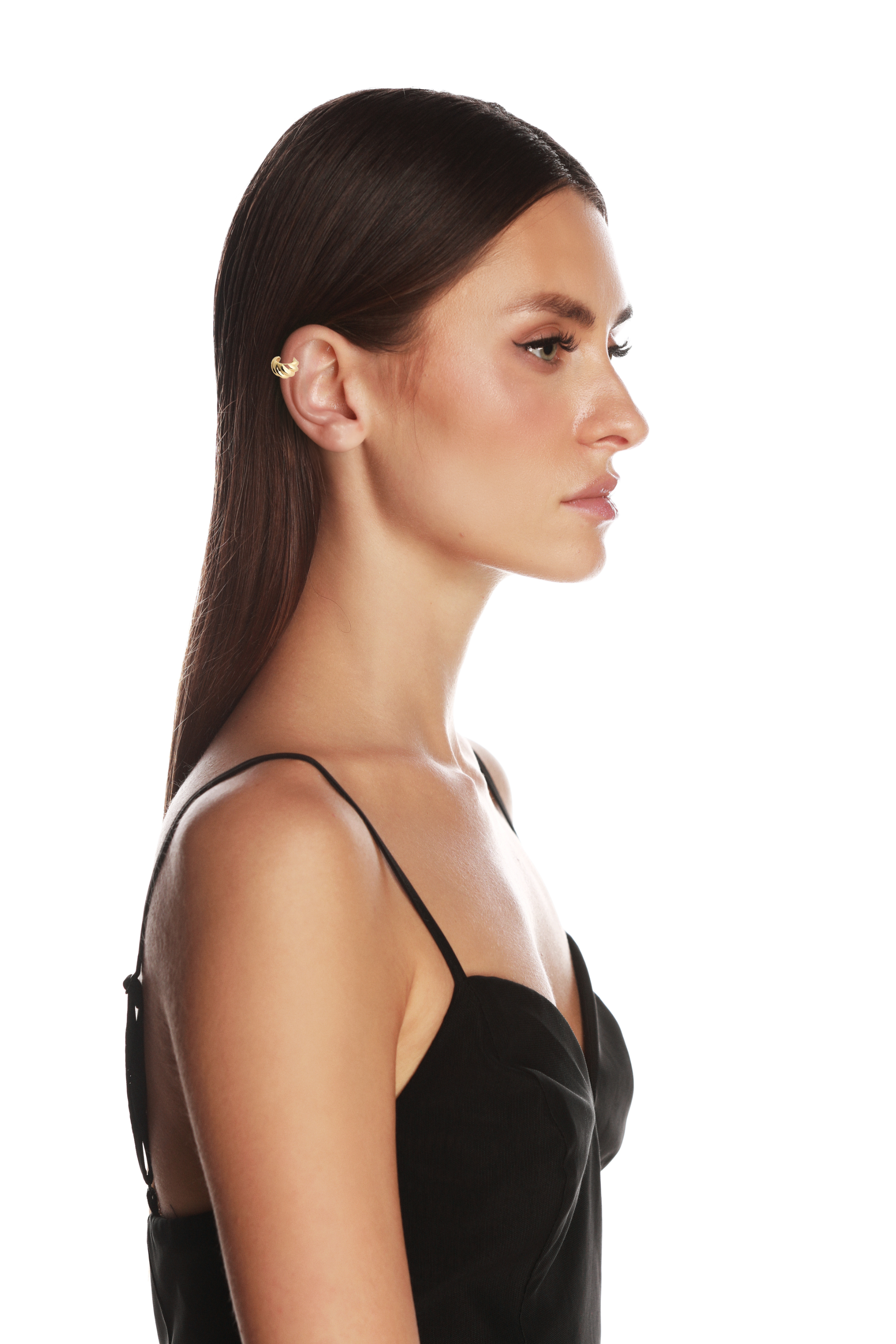 Inspired by fluid movement and refined structure, the Gilded Coil Gold Ear Cuff transforms the ear into a sculptural accent. Its smooth, gold-tone coil design wraps elegantly, adding modern sophistication to any look.