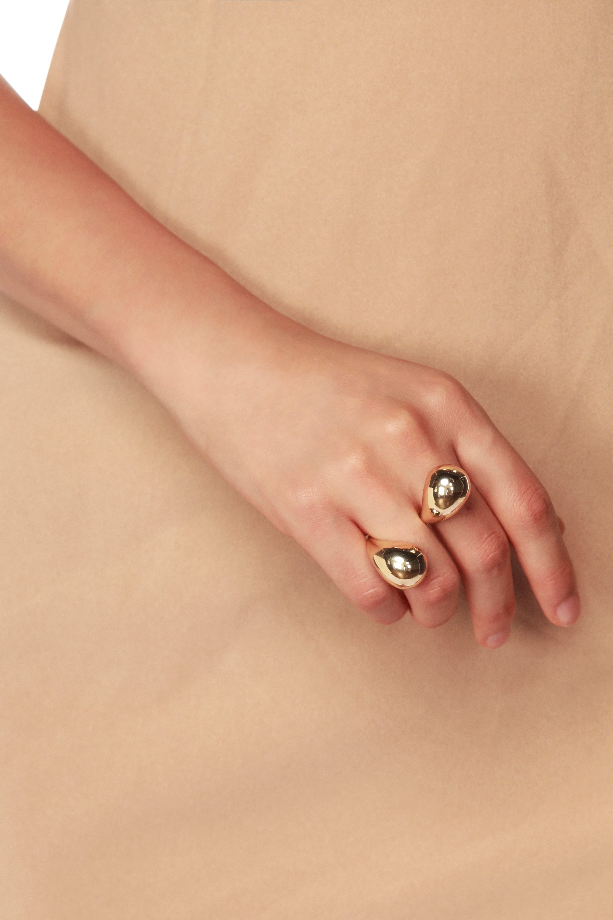 Make a statement with the Large Dual Gold Ring. This distinctive piece showcases two bold bands. Its modern, architectural appeal adds a touch of high-impact style to any ensemble.
