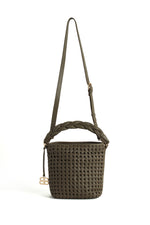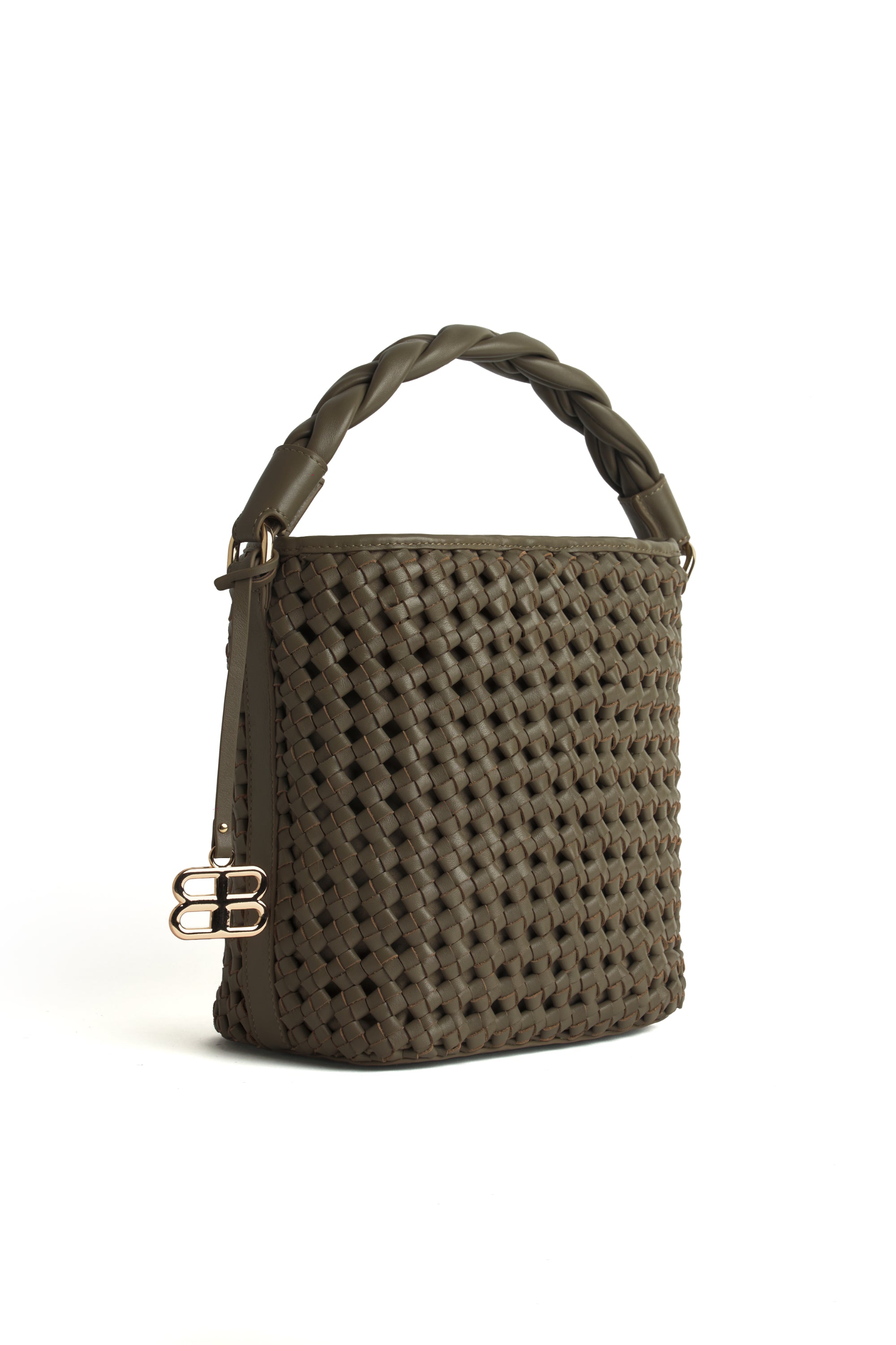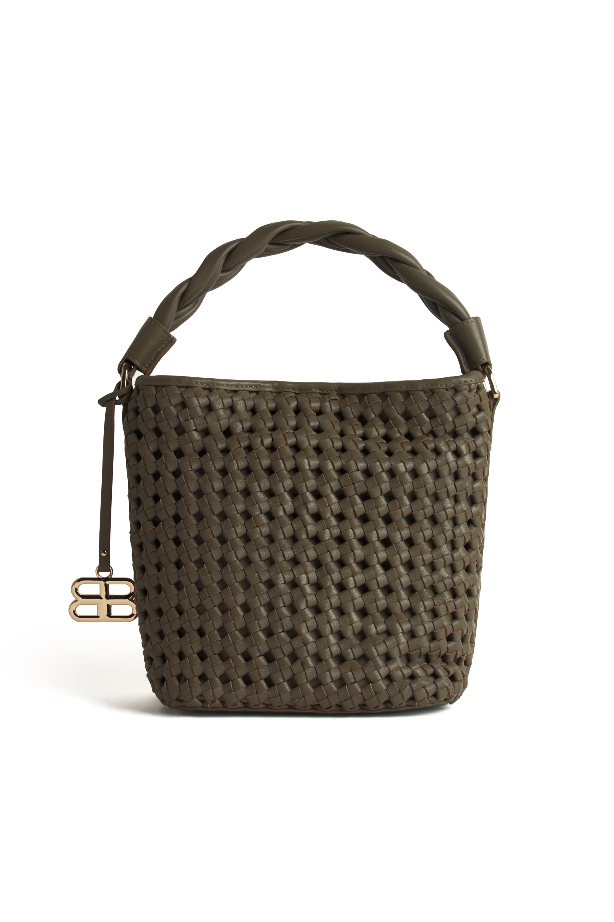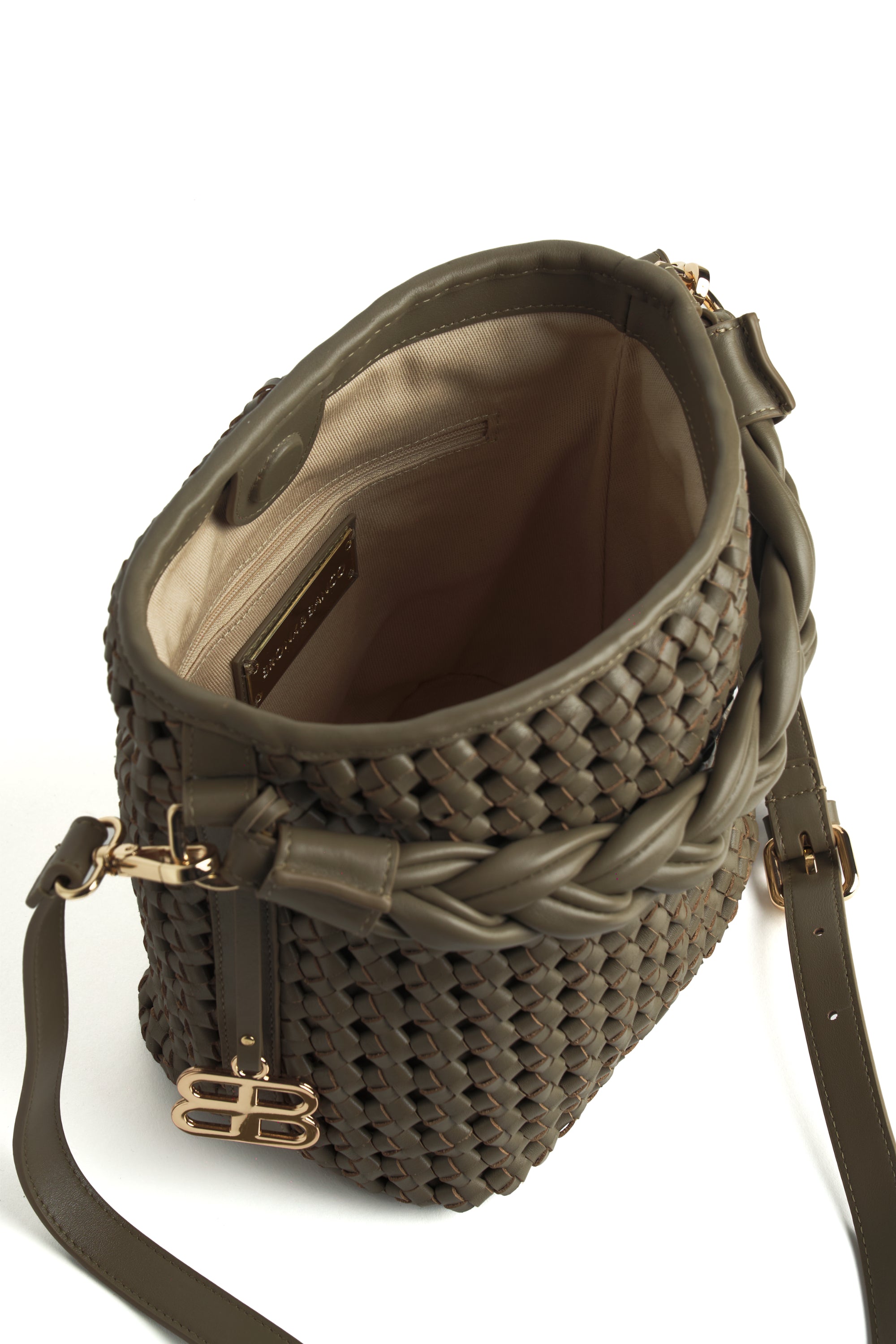 Sofia Woven Leather Midi Bag in Khaki Napa Leather