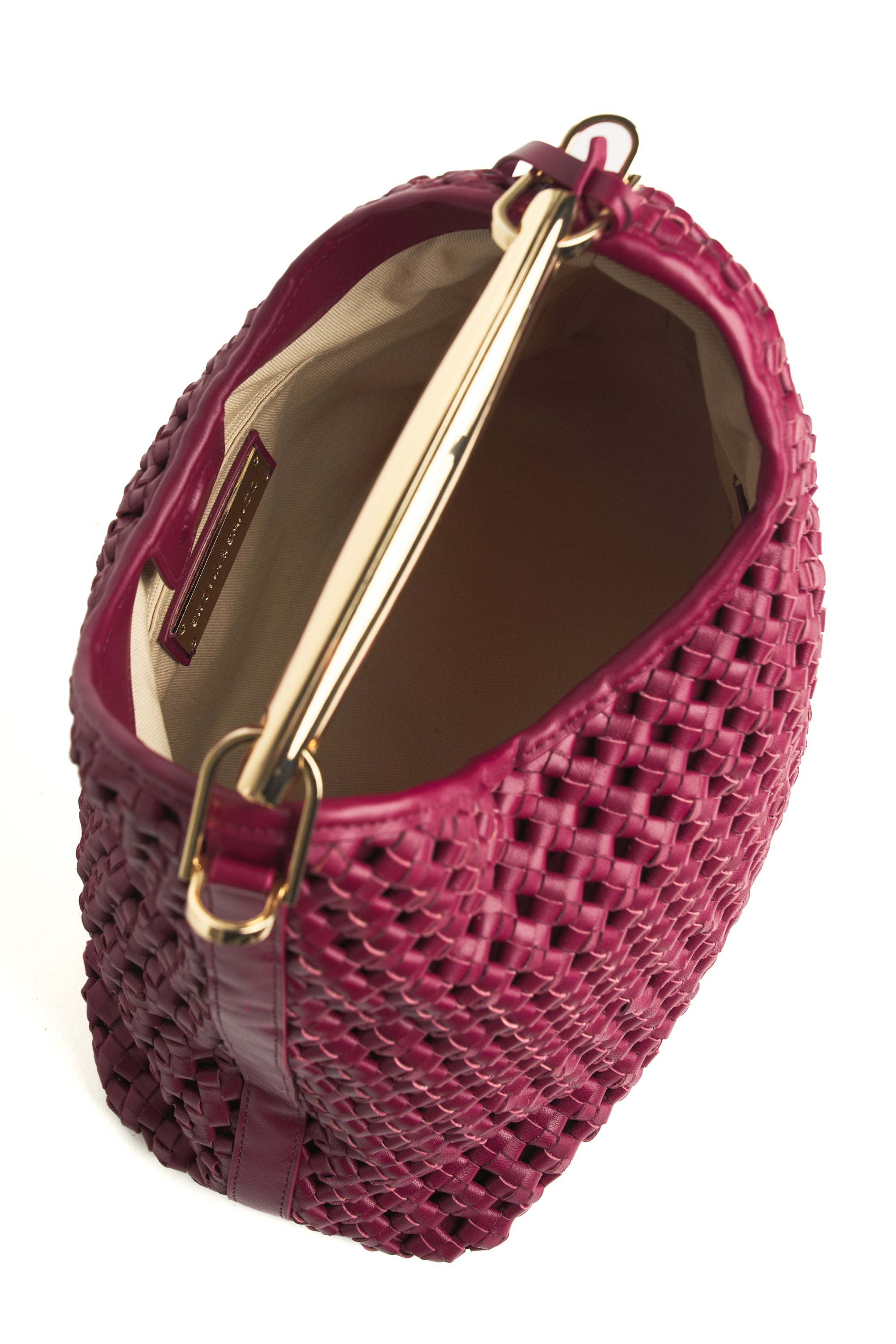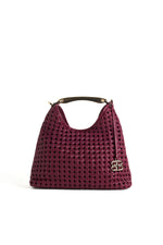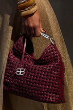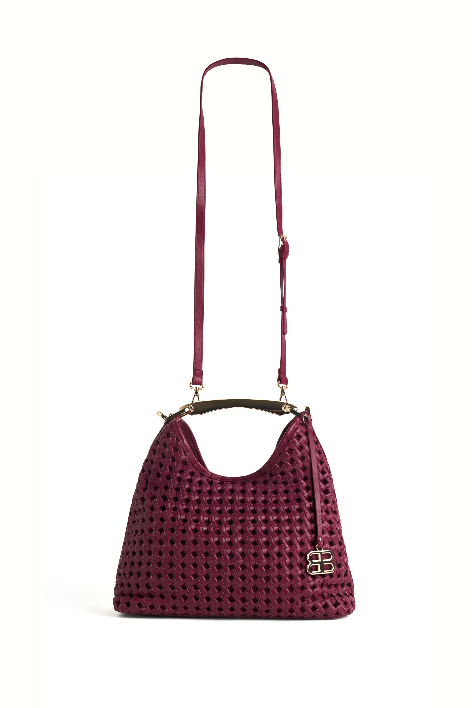 Sofia Woven Leather Midi Bag in Red Wine Napa Leather