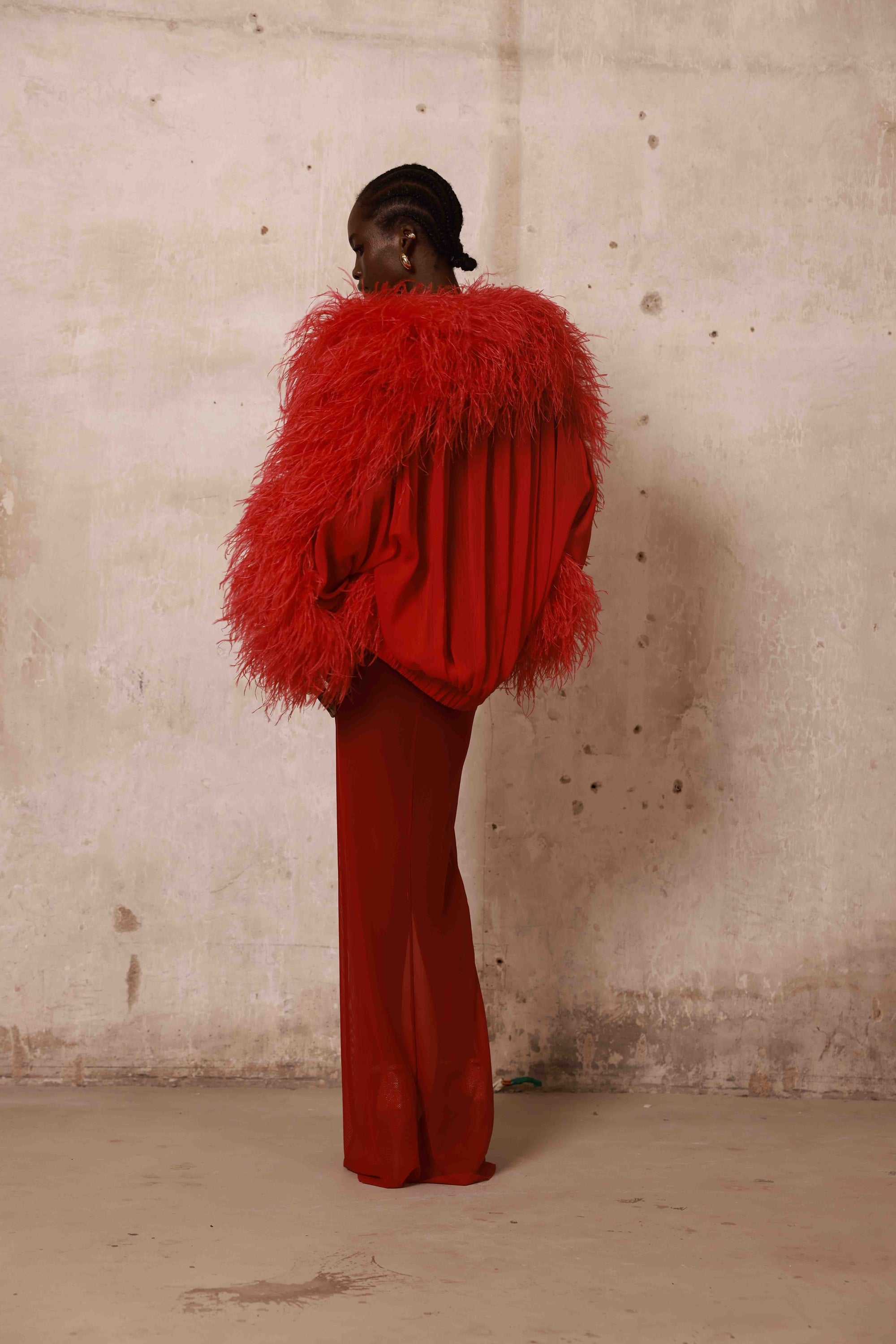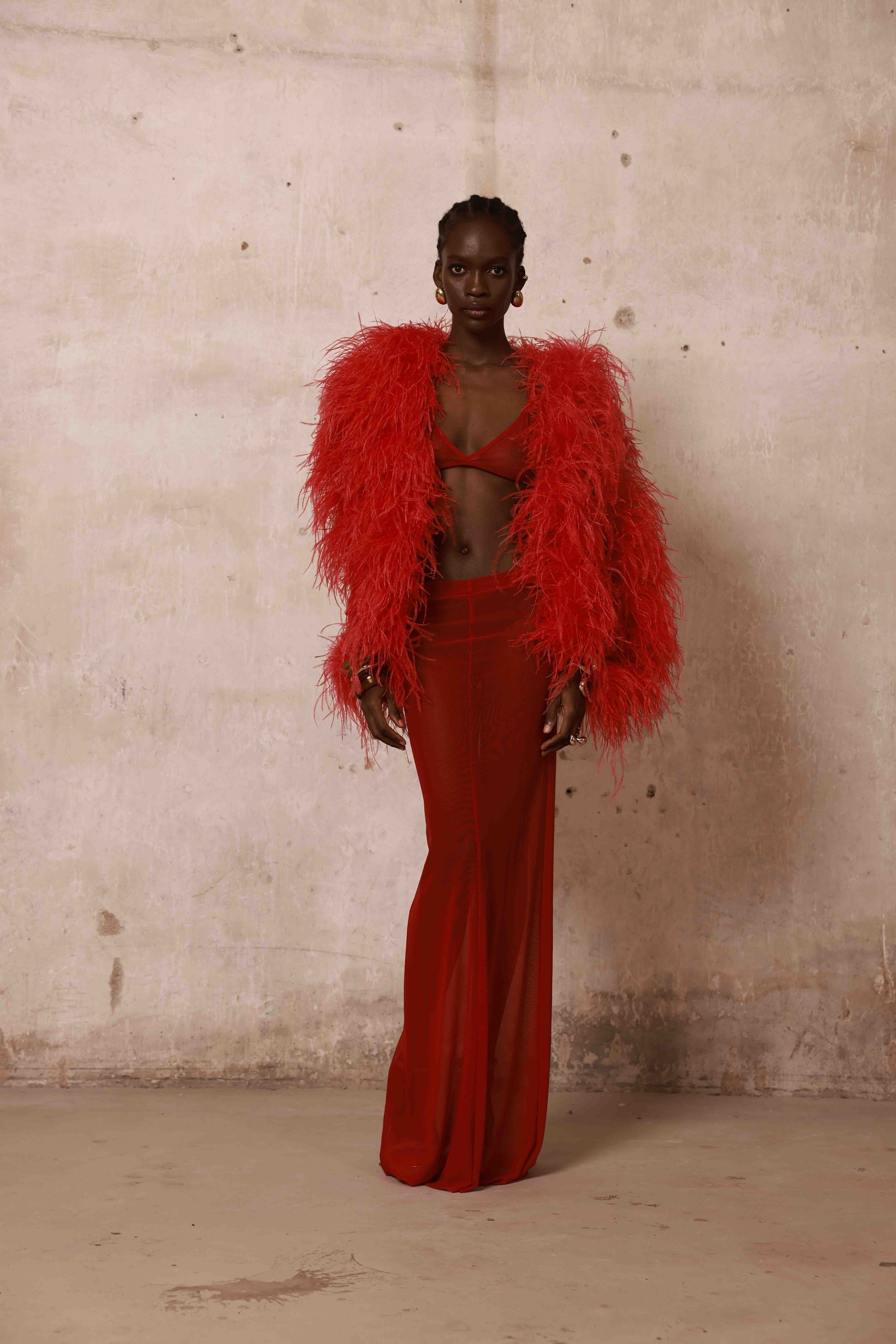 Hollis Top & Maxi Skirt Set + Marlowe Feather Bomber Jacket
