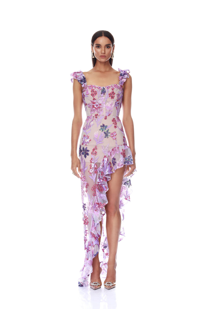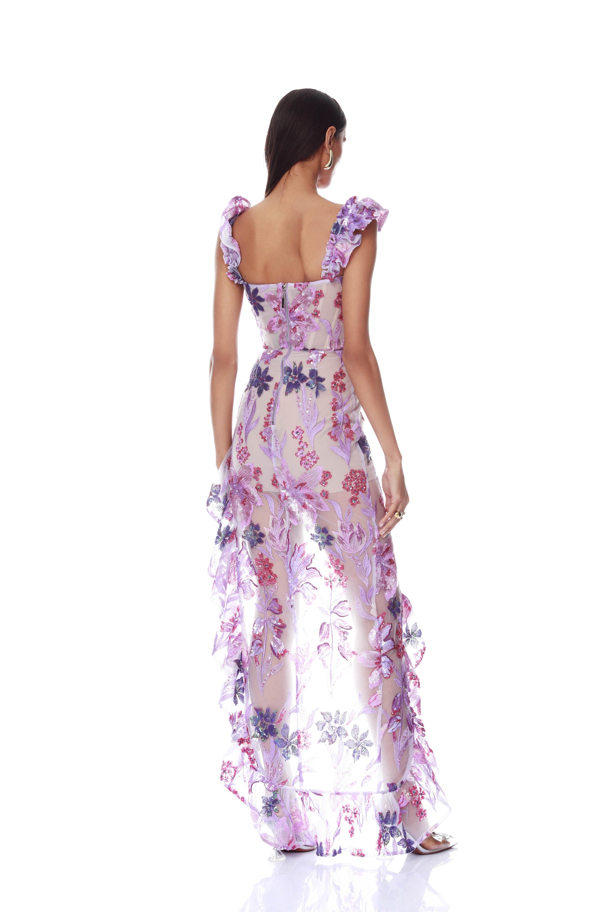 Embody effortless grace in our Lotus Sequin Purple Multi Maxi Dress, a flowing silhouette that captures timeless elegance for any occasion.