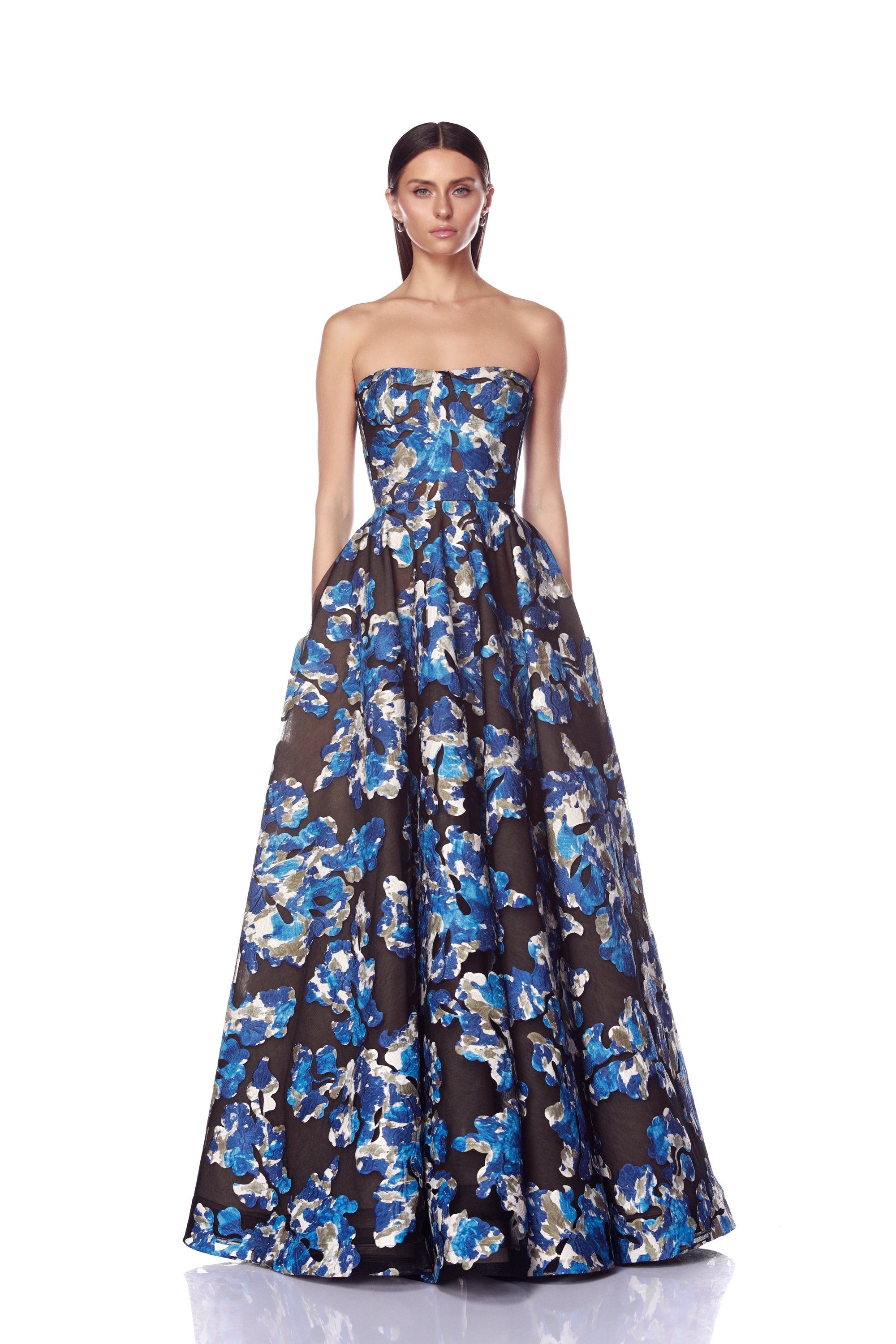 Farah Ocean Blue Sequin Multi Strapless Maxi Dress
