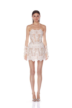 Embrace bridal elegance with the Maraya Blanc Lace Gloves. These mesh lace-up gloves are designed with floral appliqués and faux pearls throughout.