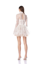 Make an elegant entrance in the Daphne Ivory Long Sleeve Mini Dress, a romantic and delicate piece for any occasion.