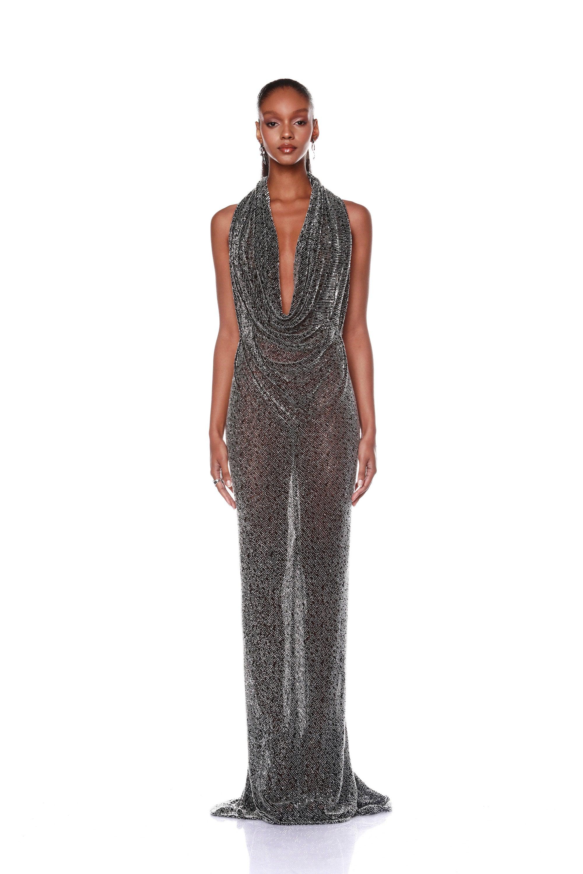 Amalia Noir Beaded Gown