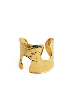 Elevate your ear stack with the Molten Gold Ear Cuff. Its fluid, sculptural gold form channels molten metal aesthetics for a modern and striking statement piece.