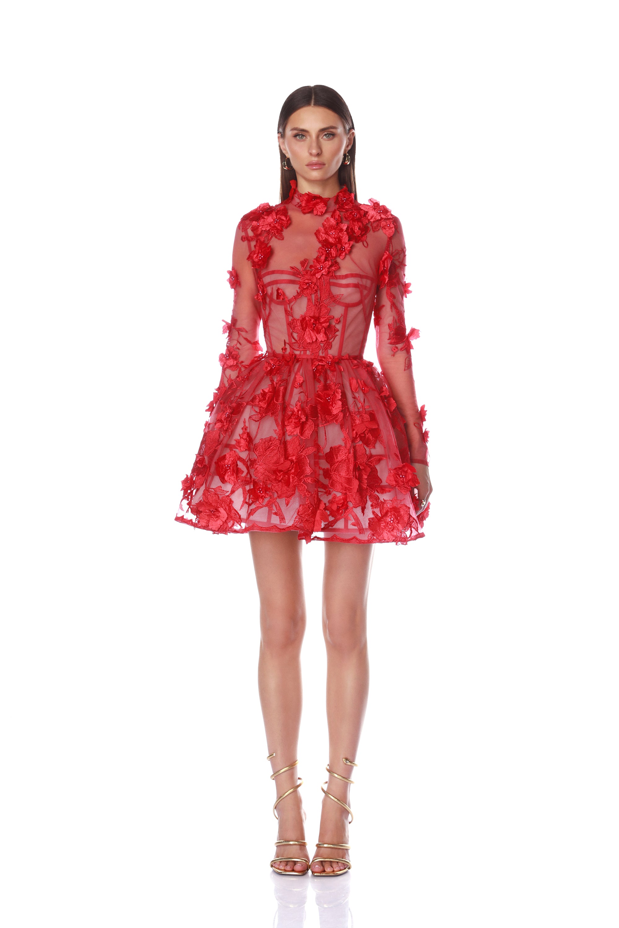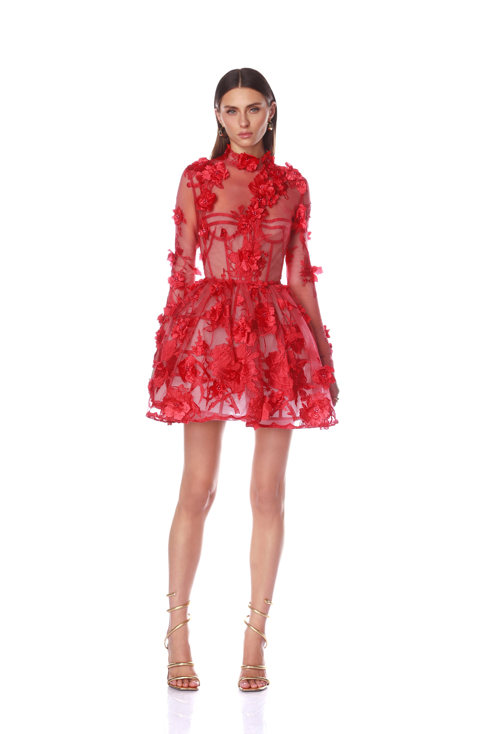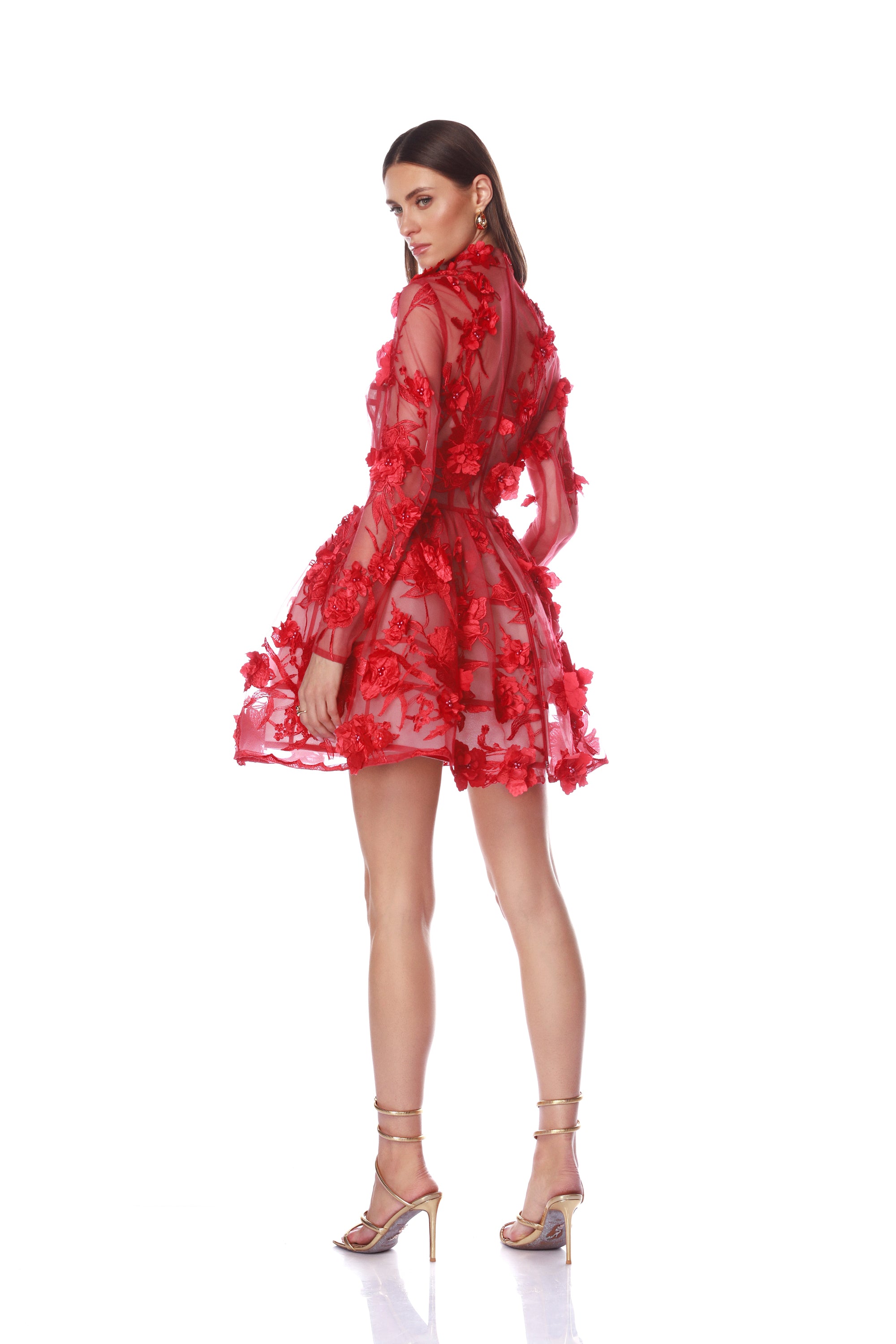 Exude elegance with our Anastasia Red Floral Long Sleeve Mini Dress.