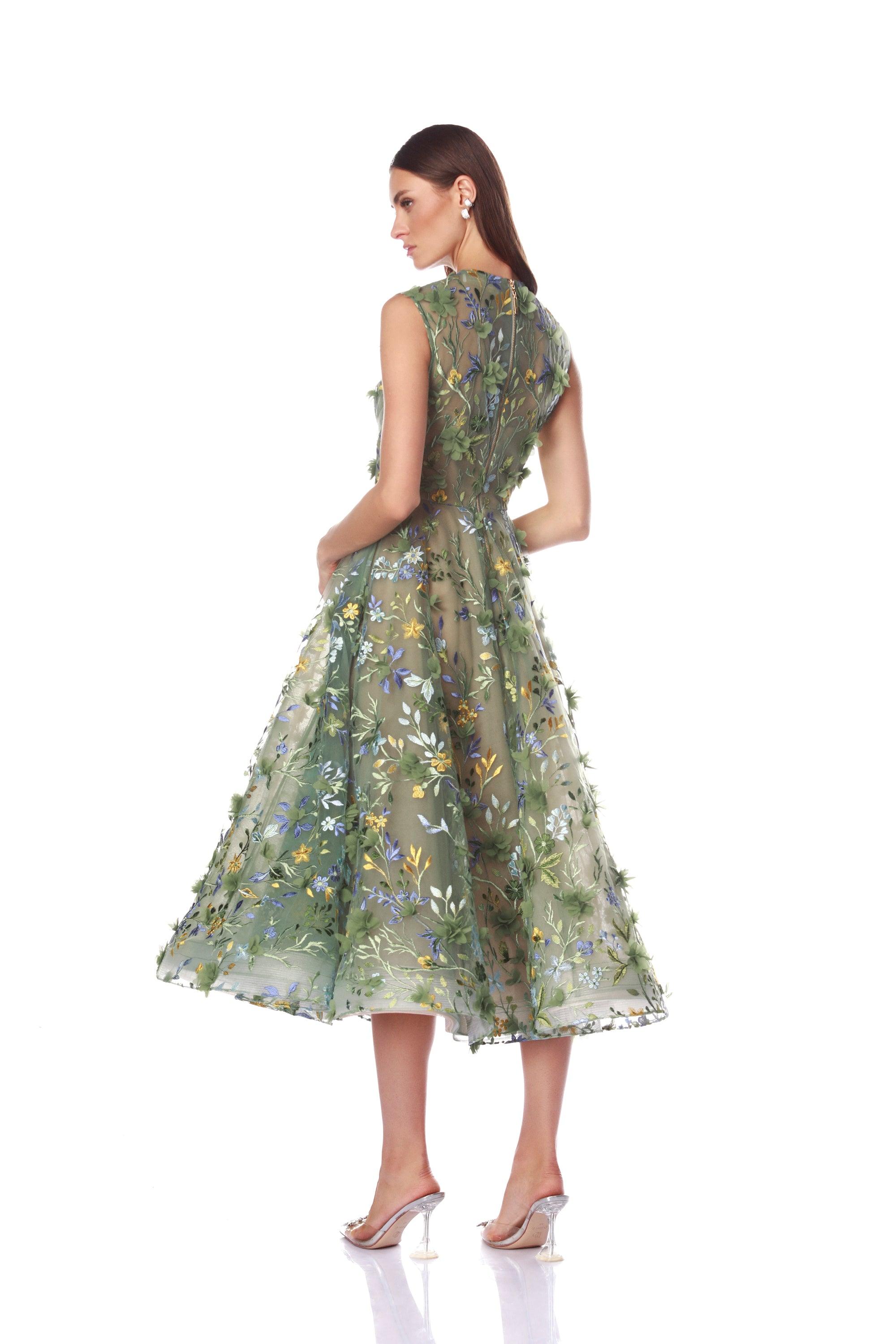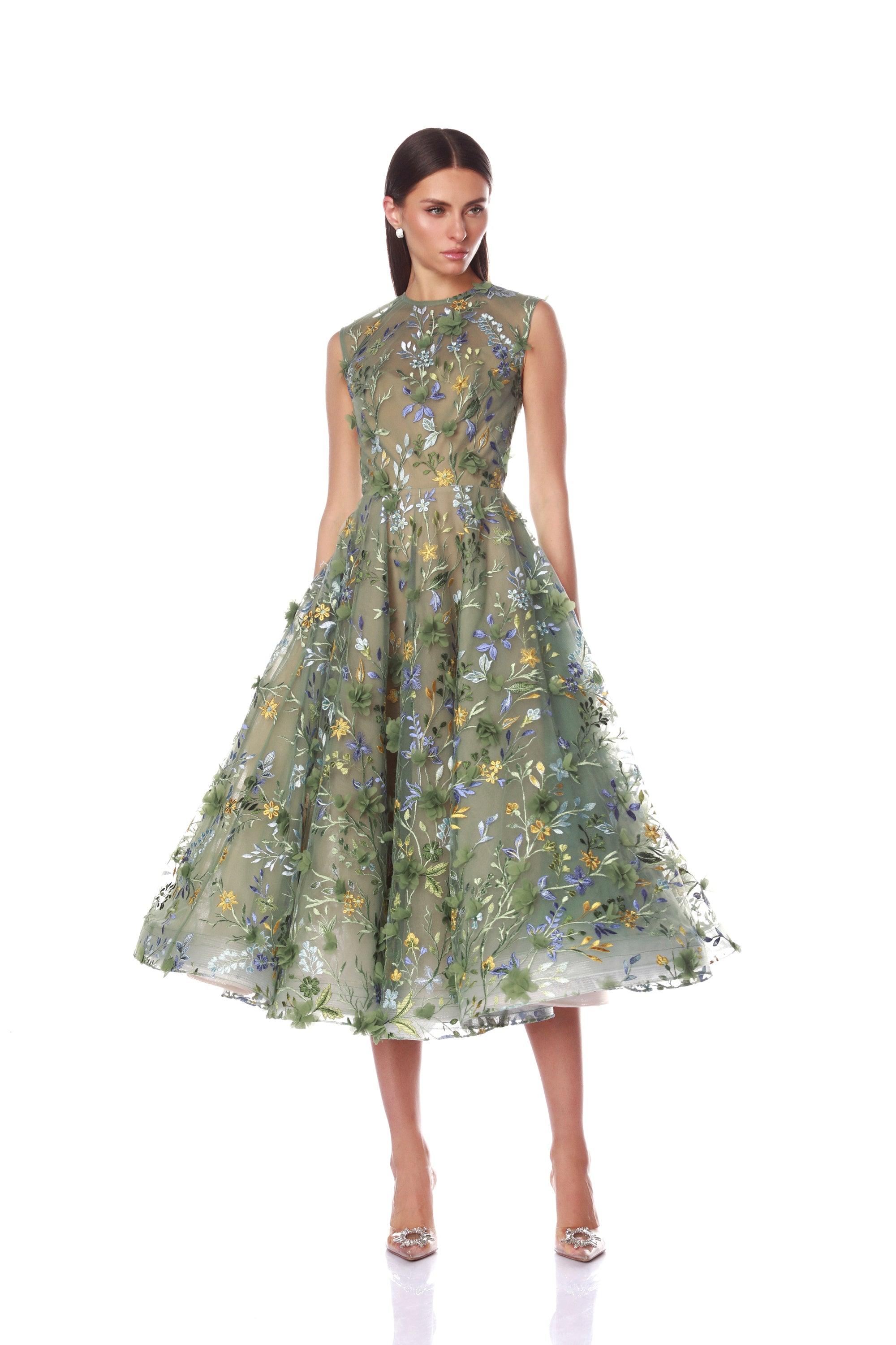 Radiate elegance in our Saba Floral Green Midi Dress, featuring intricate embroidery and a flowing silhouette that exudes timeless charm.