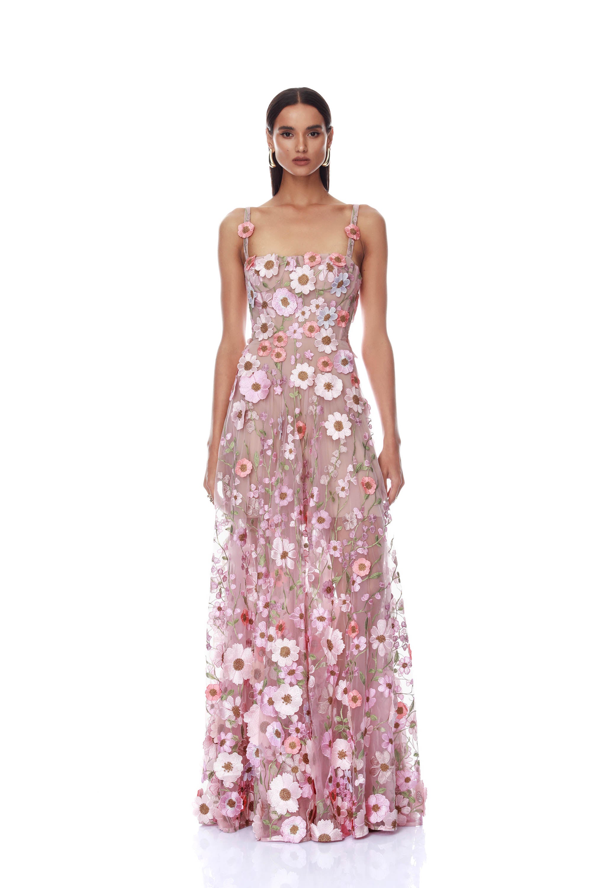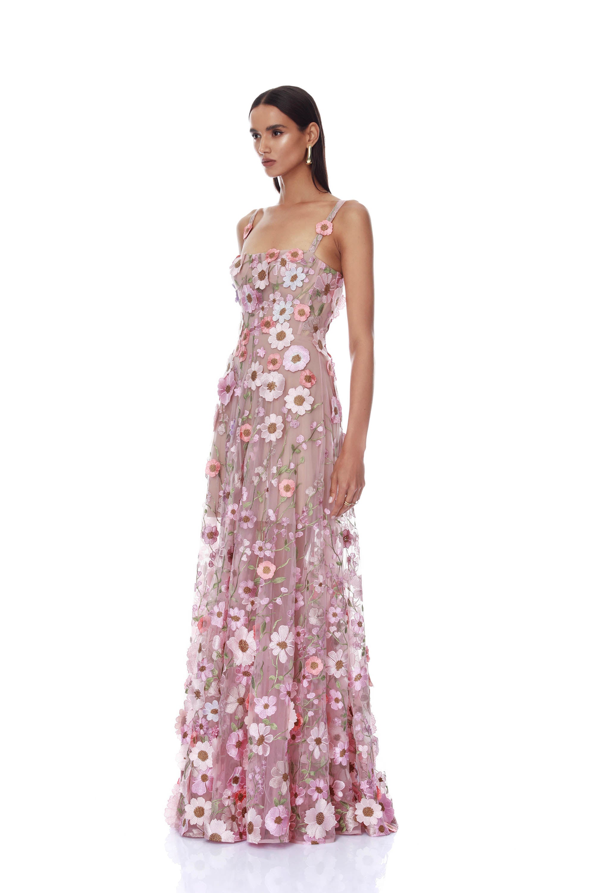 Venice 3D Floral Jasmine Pink Multi Maxi Gown
