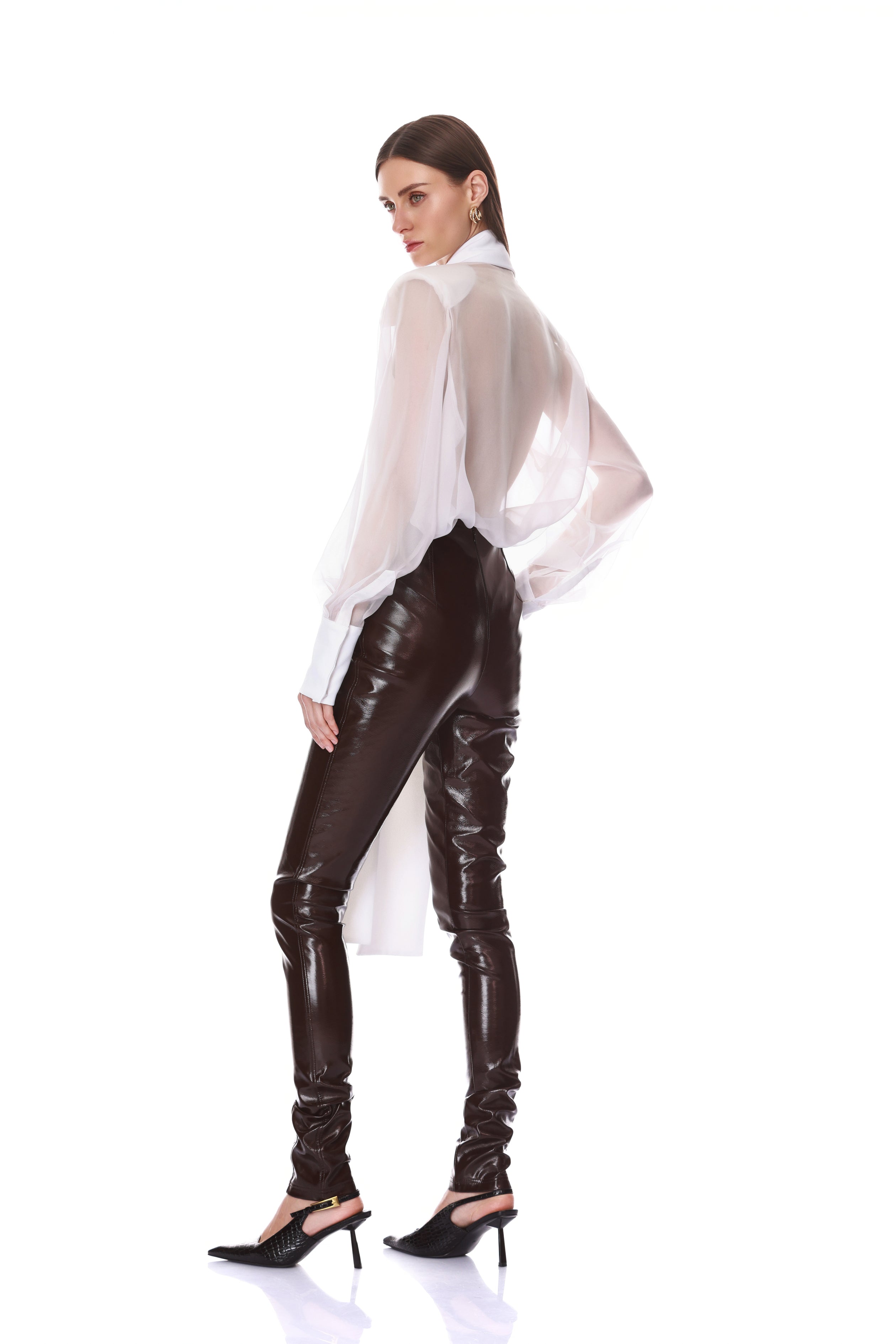 Look 5: Long Sleeve Sheer Blouse with Tie + Organza Pant