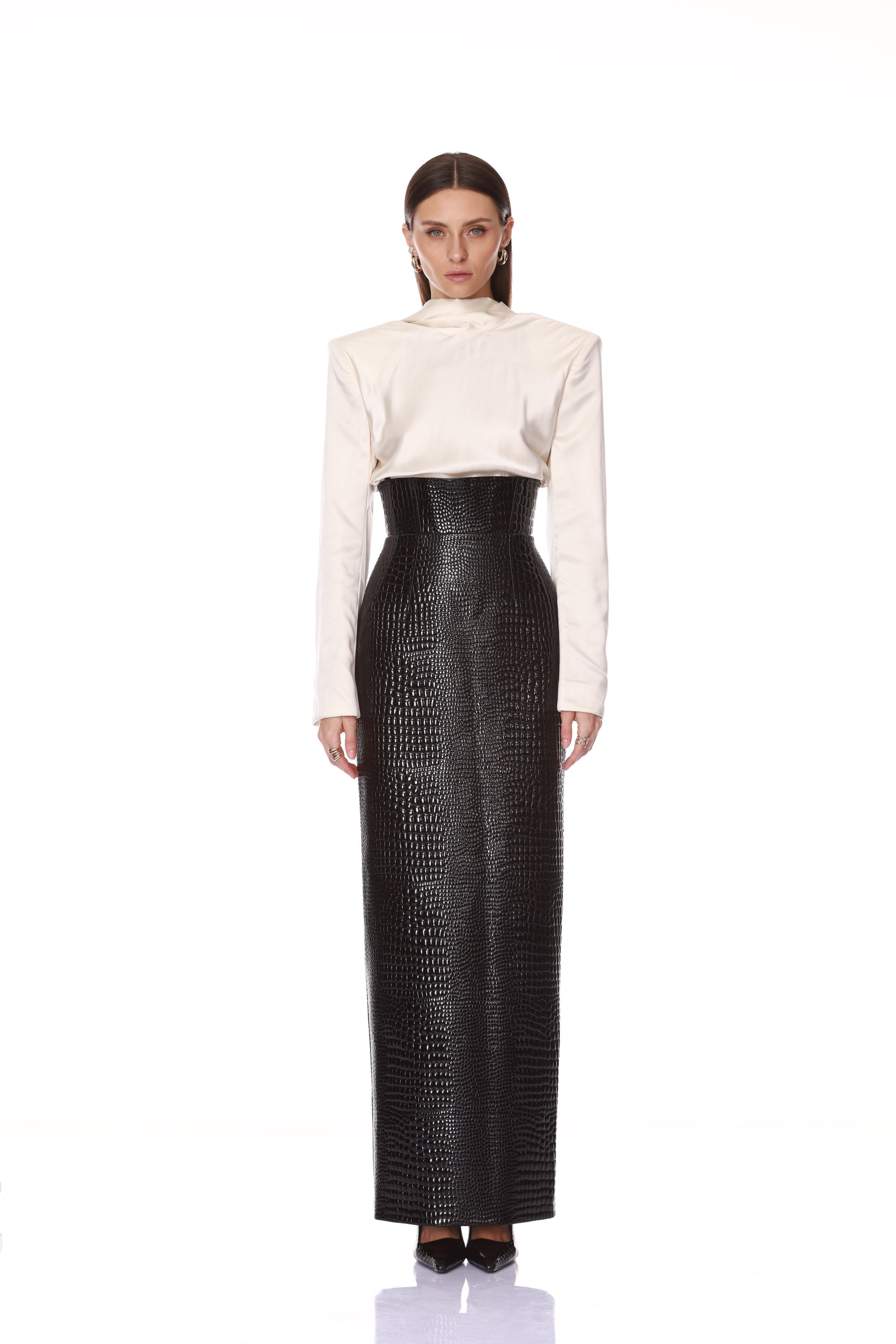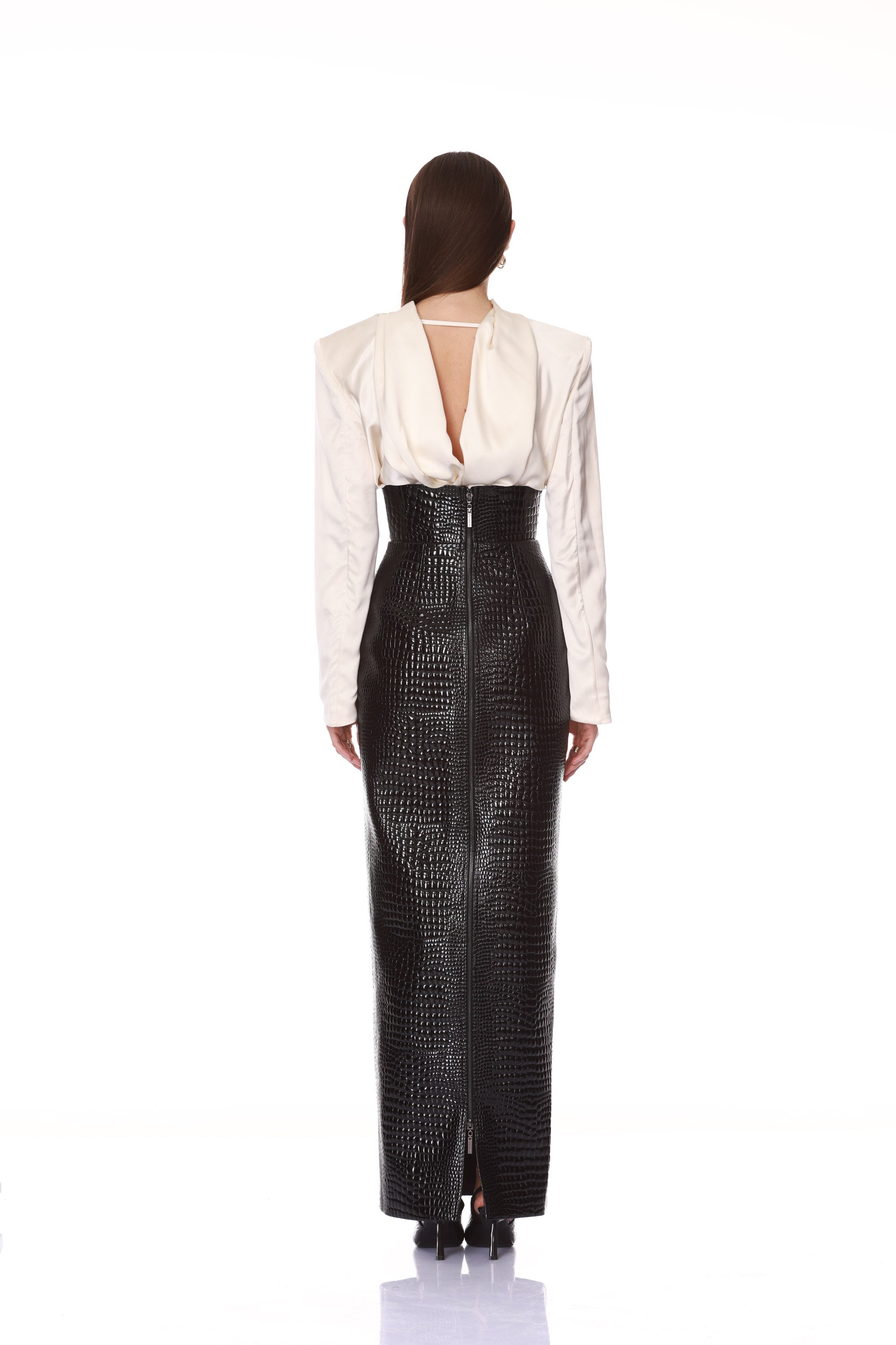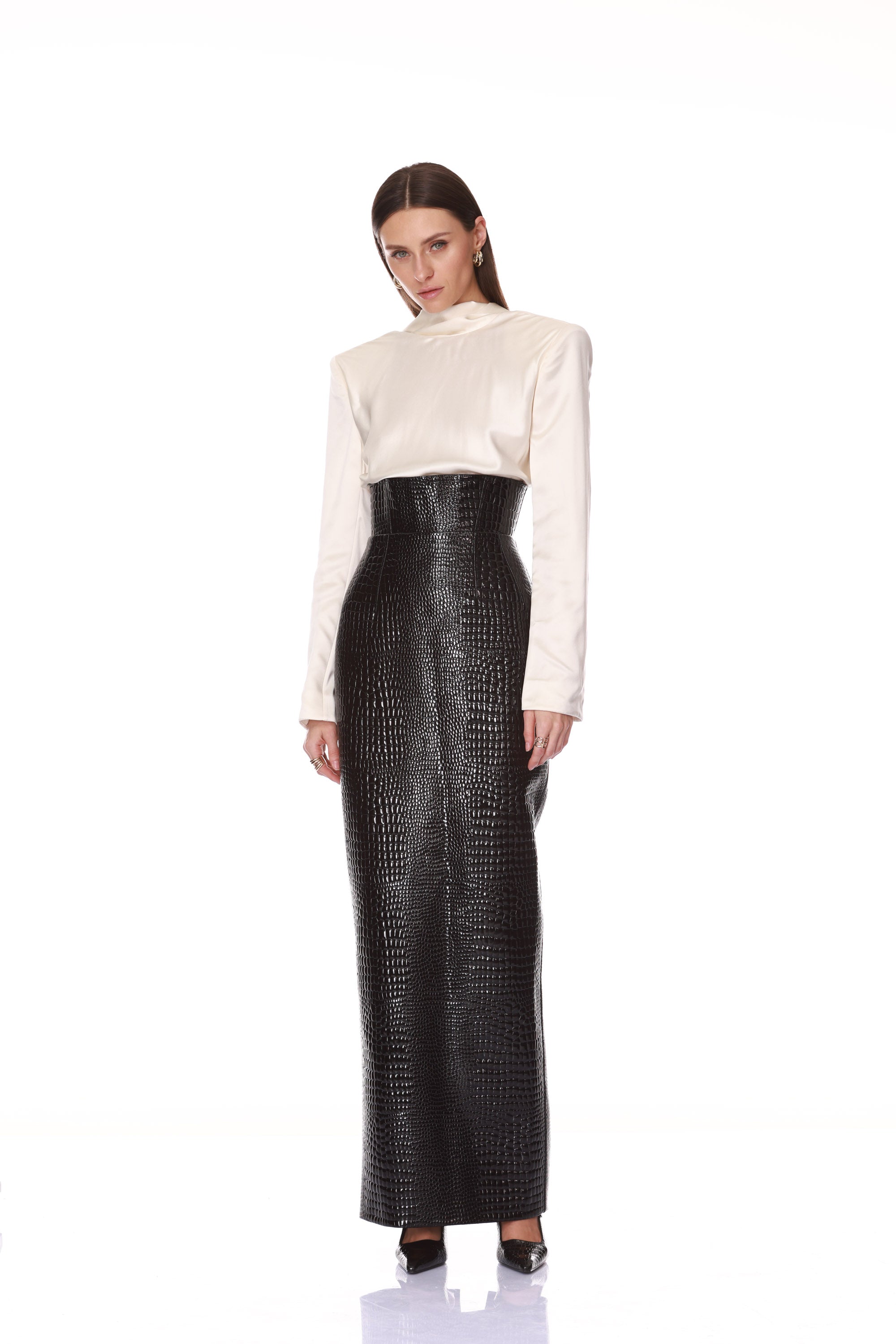 Look 3: Vegan Croc Leather Cape Top + Croc Embossed Maxi Skirt