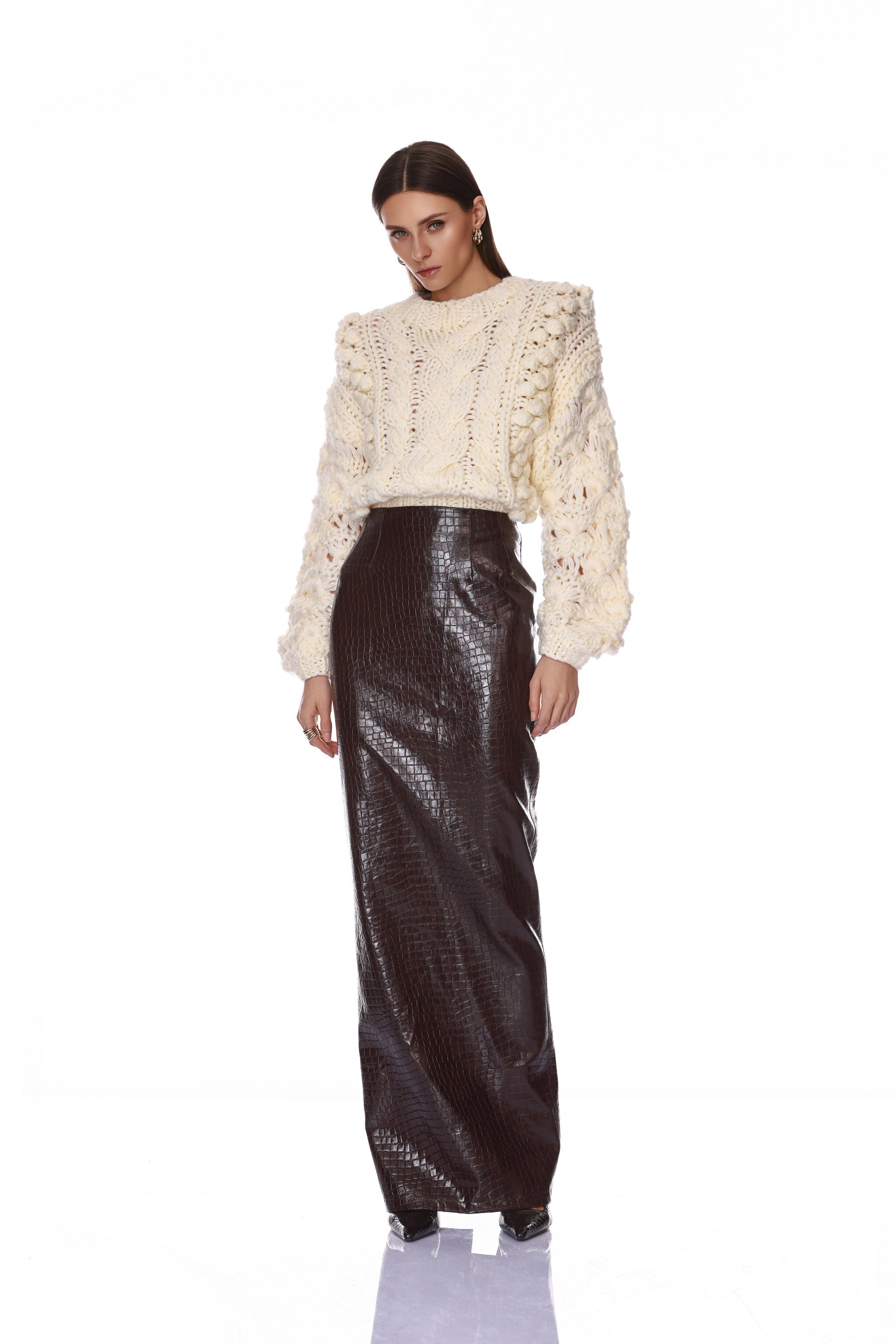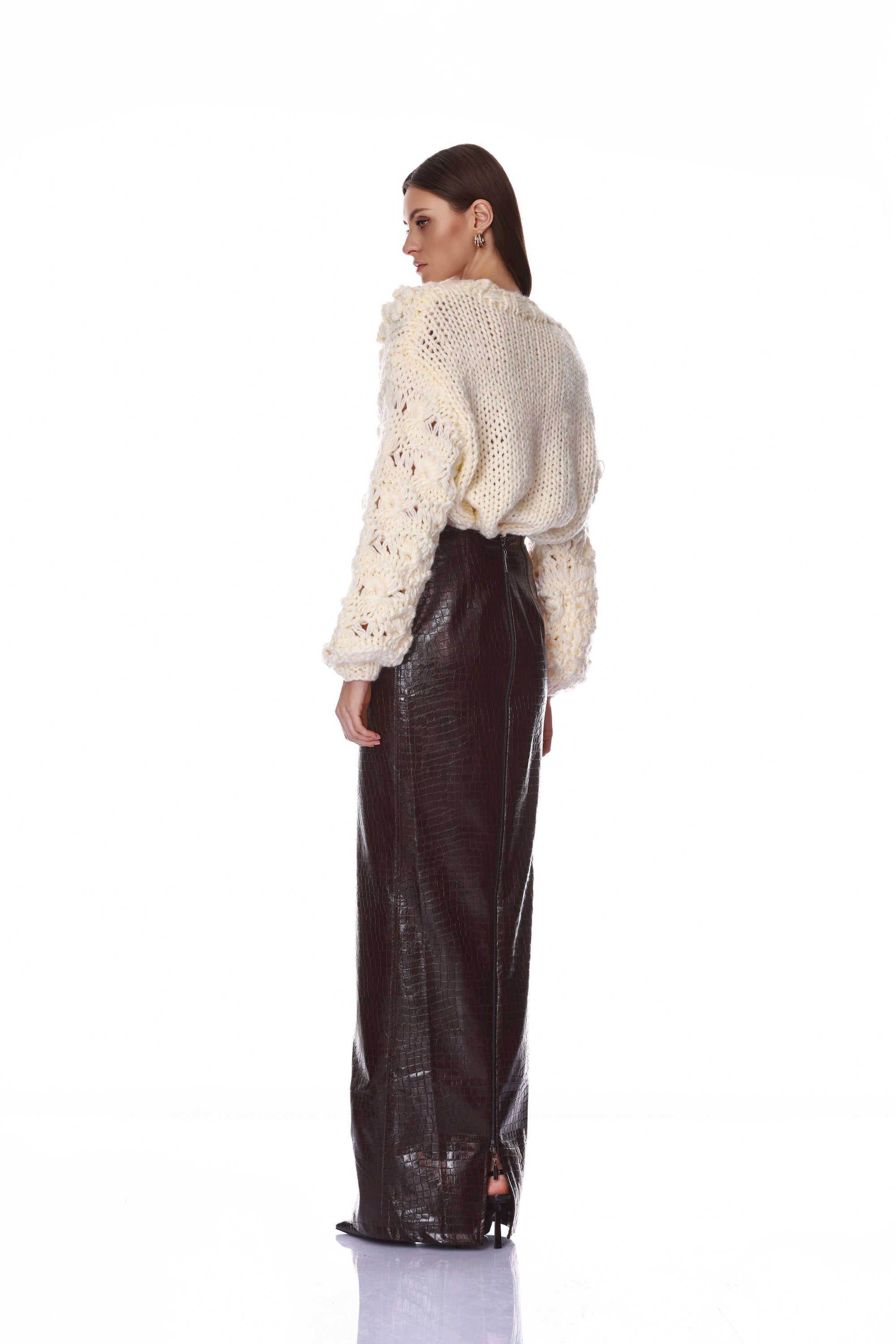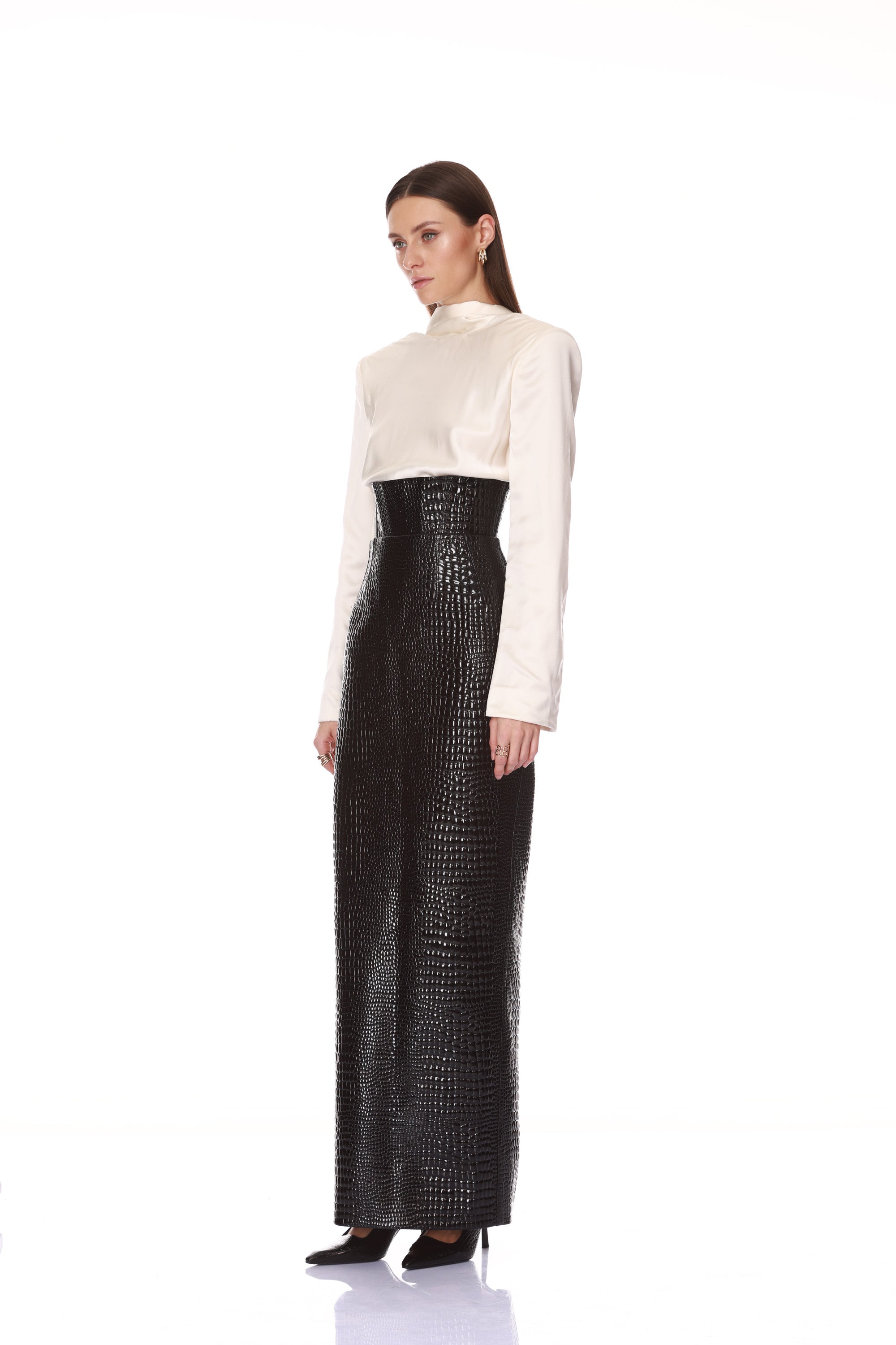 Look 3: Vegan Croc Leather Cape Top + Croc Embossed Maxi Skirt