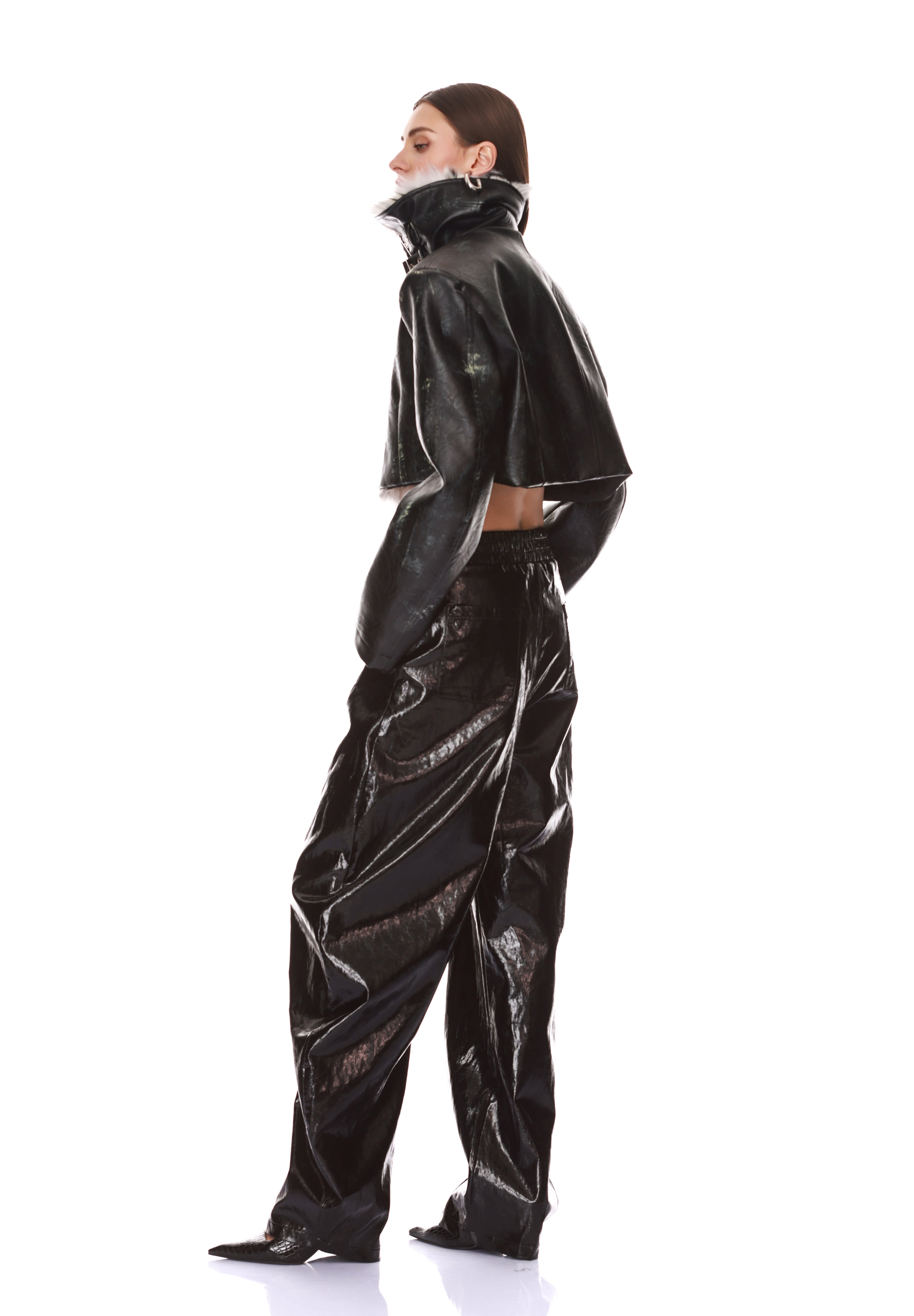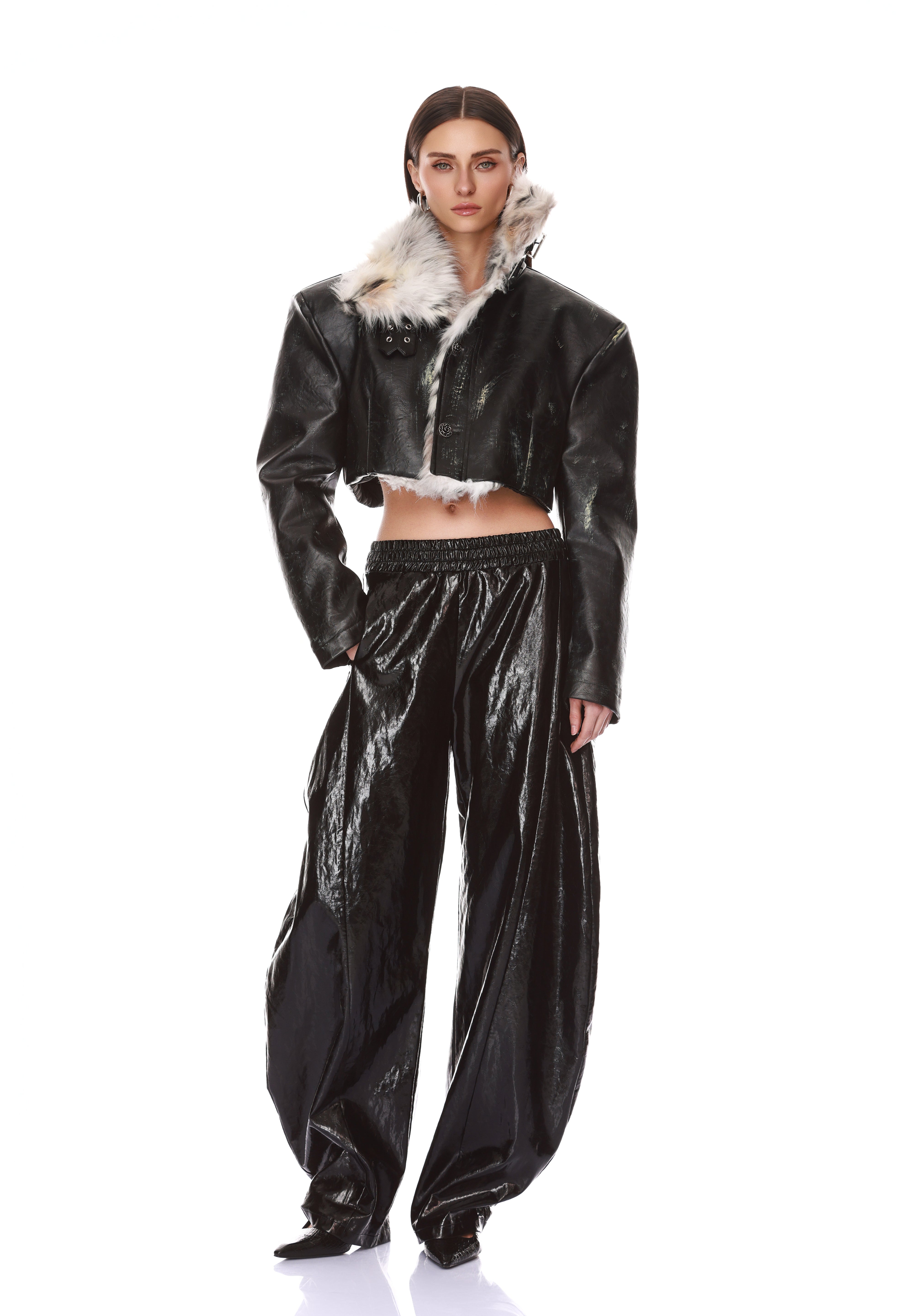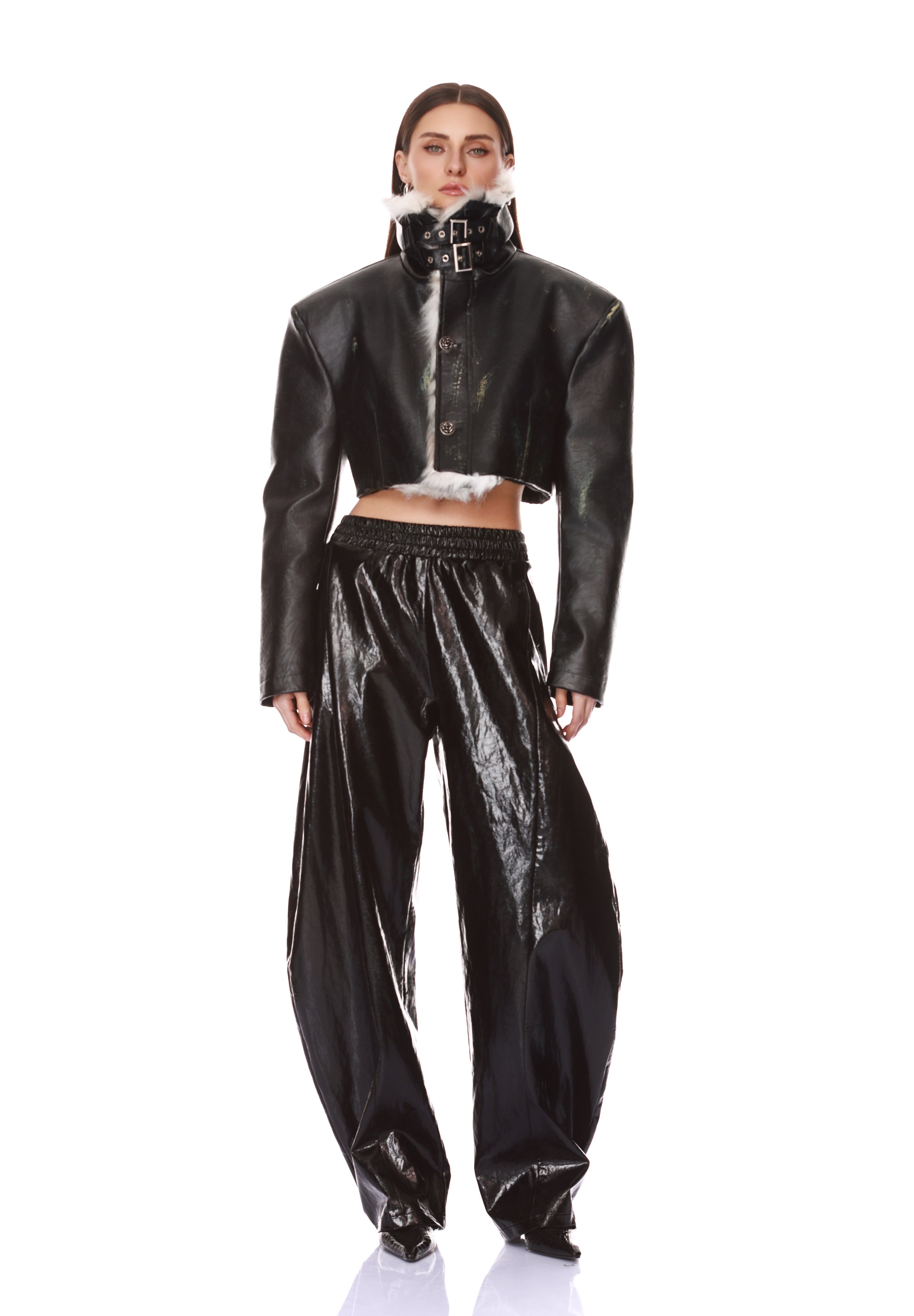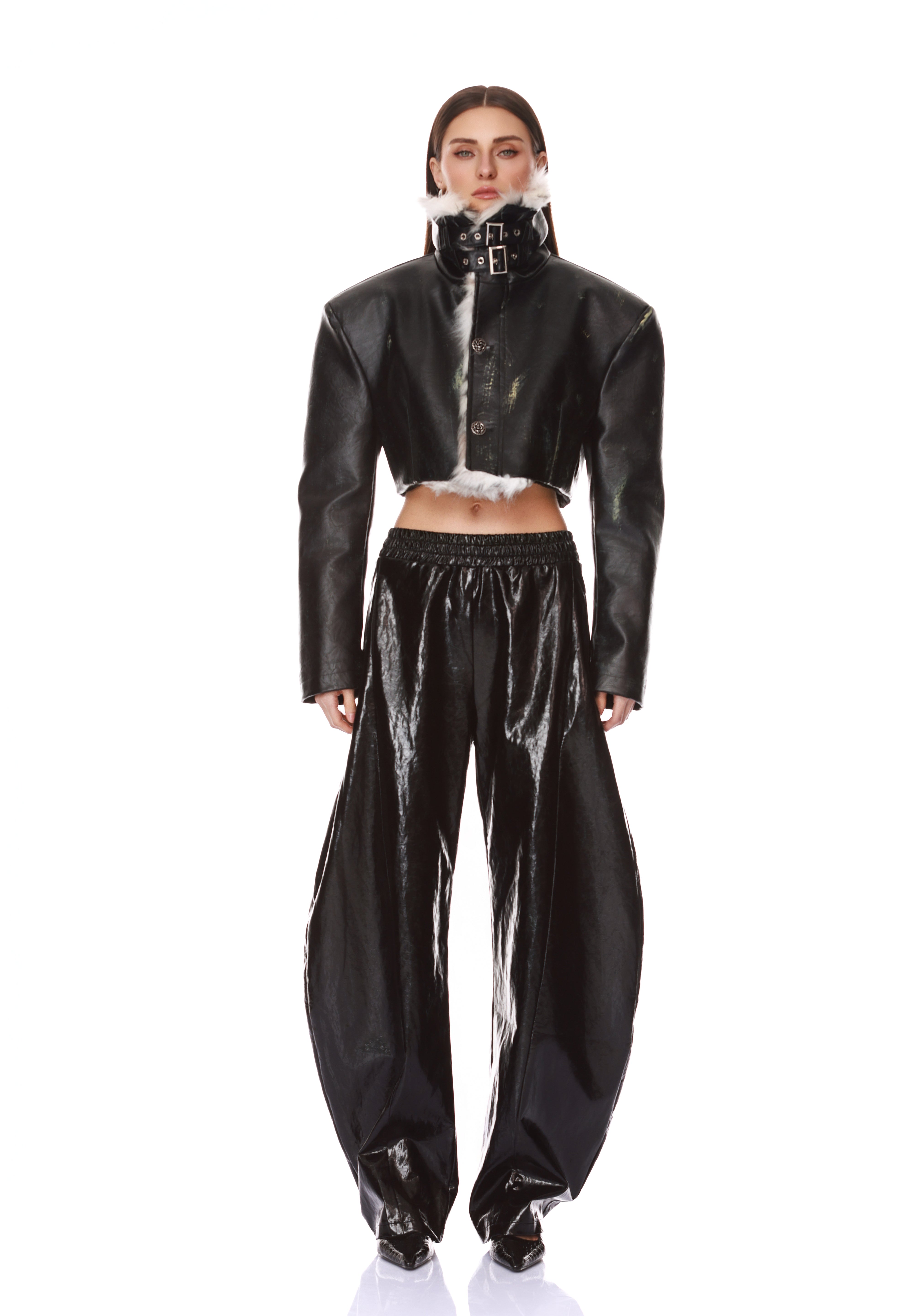 Look 8: Cropped Patent Jacket with Faux Fur Lining + Vegan Patent Leather Horseshoe Trouser