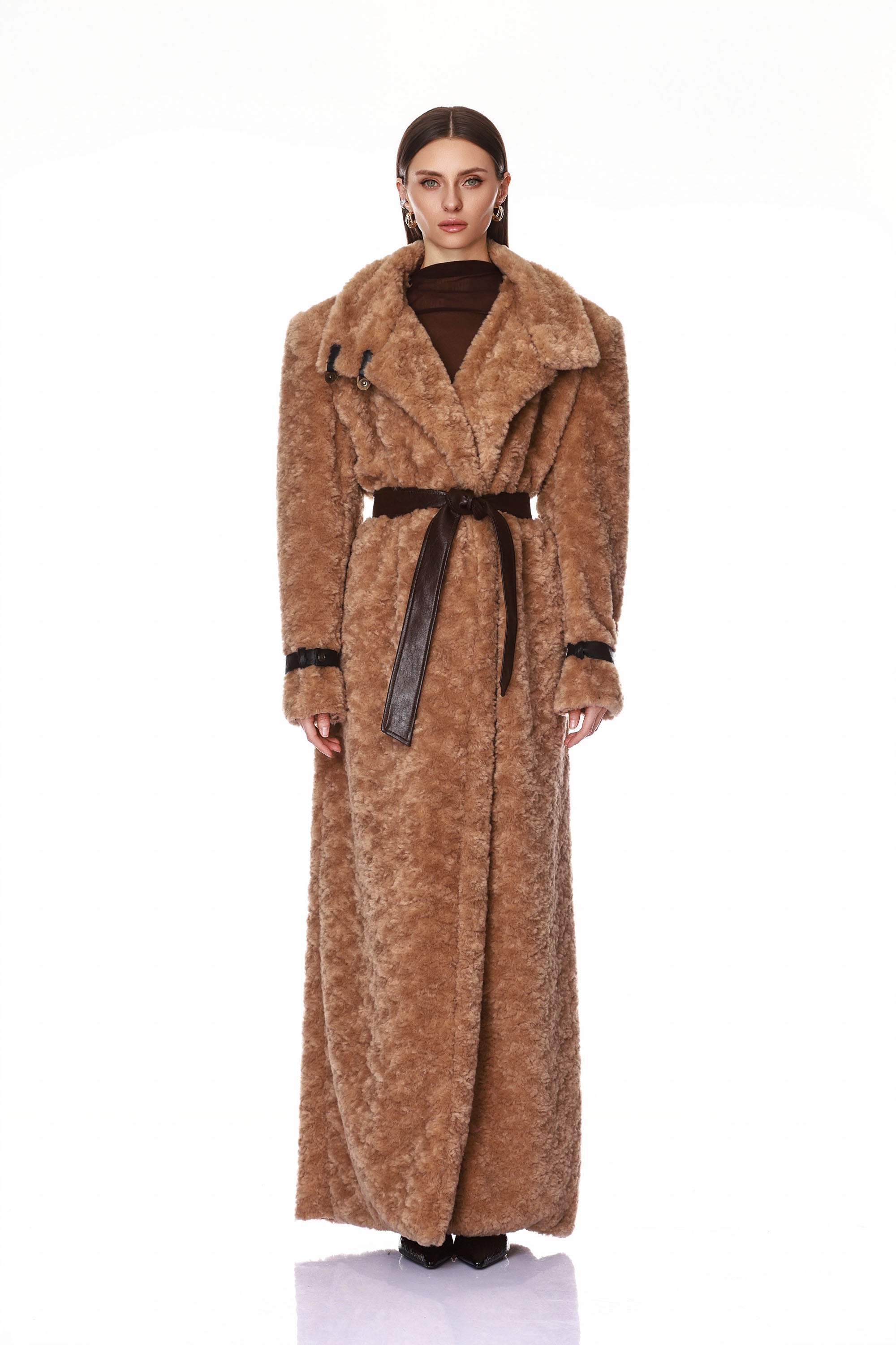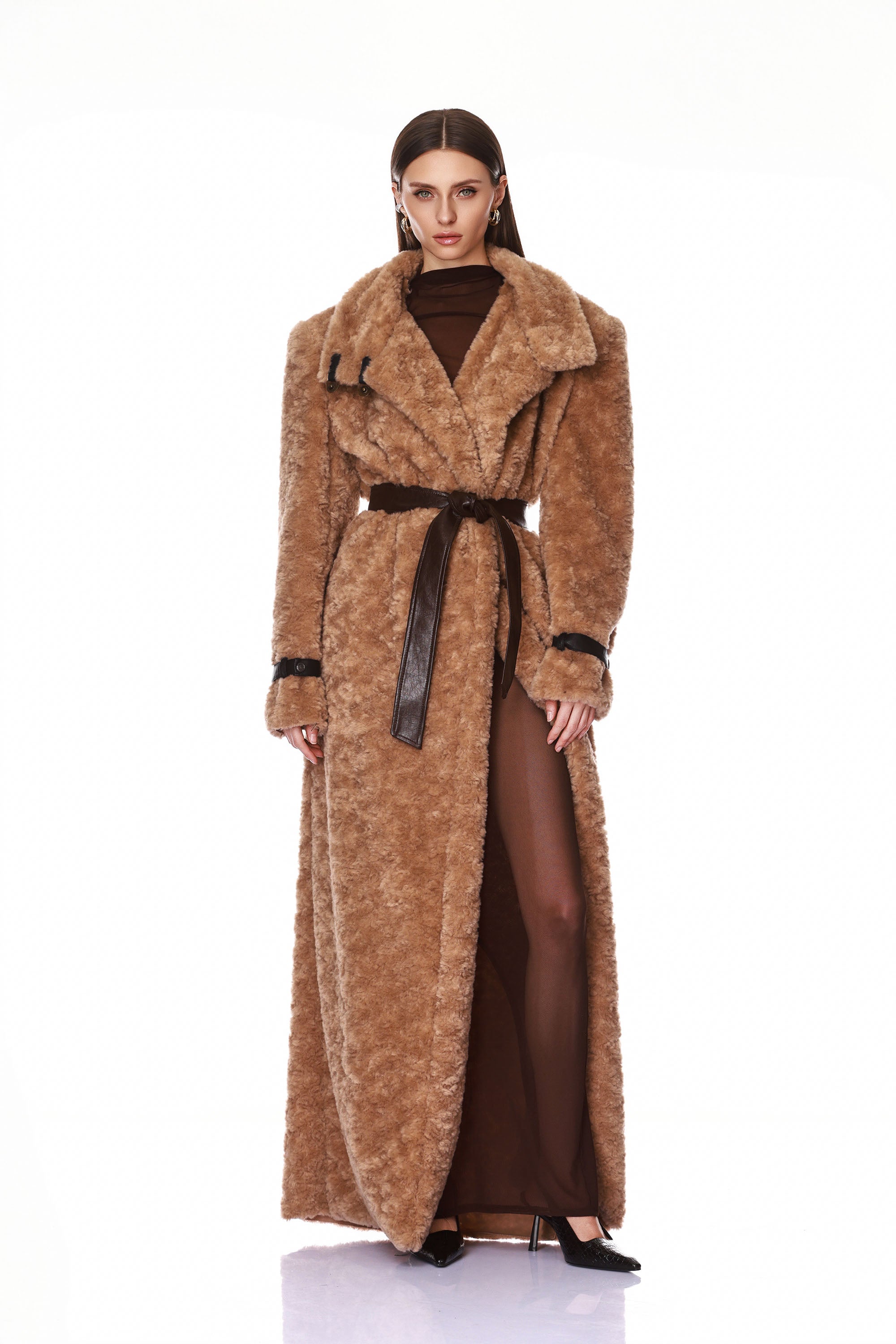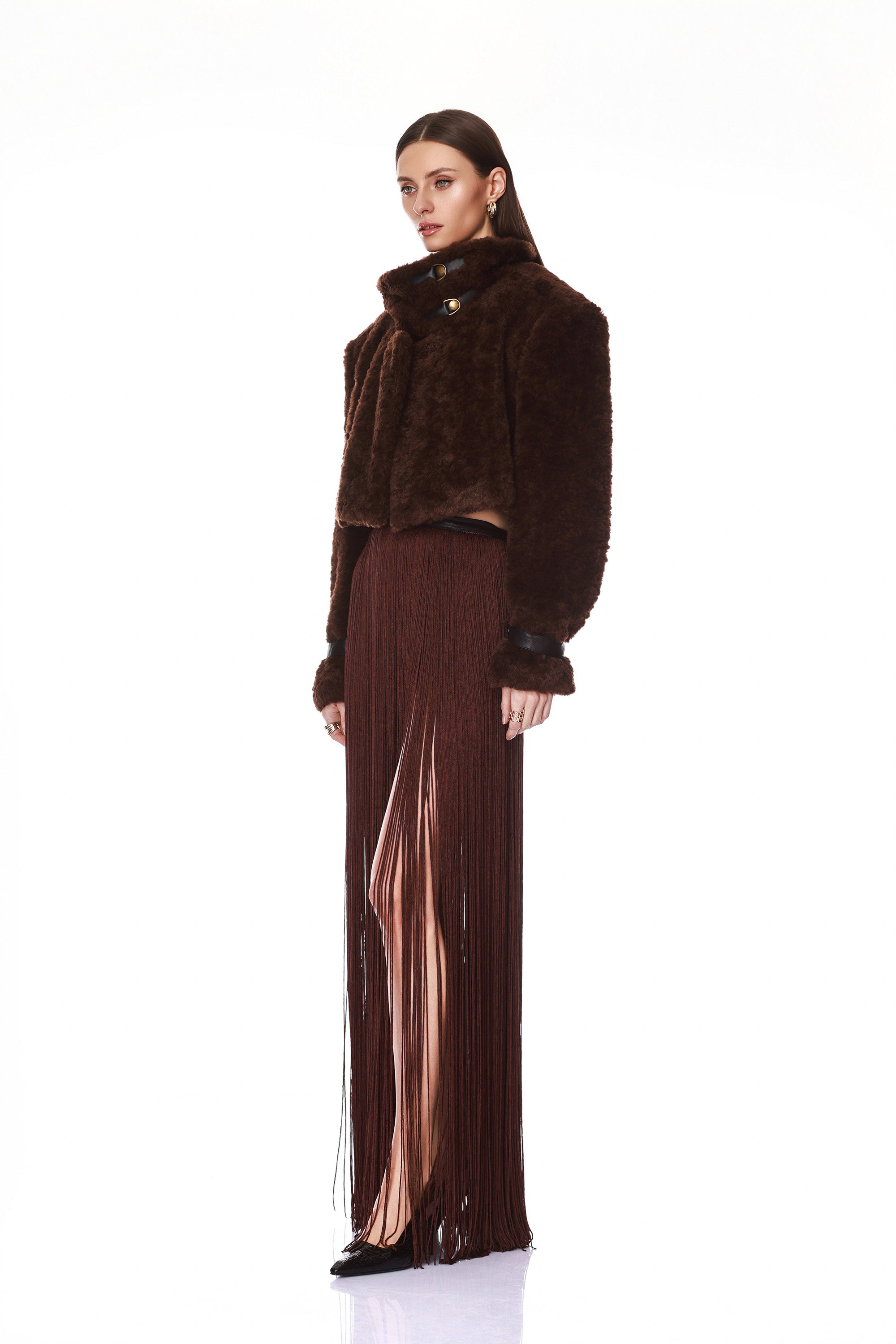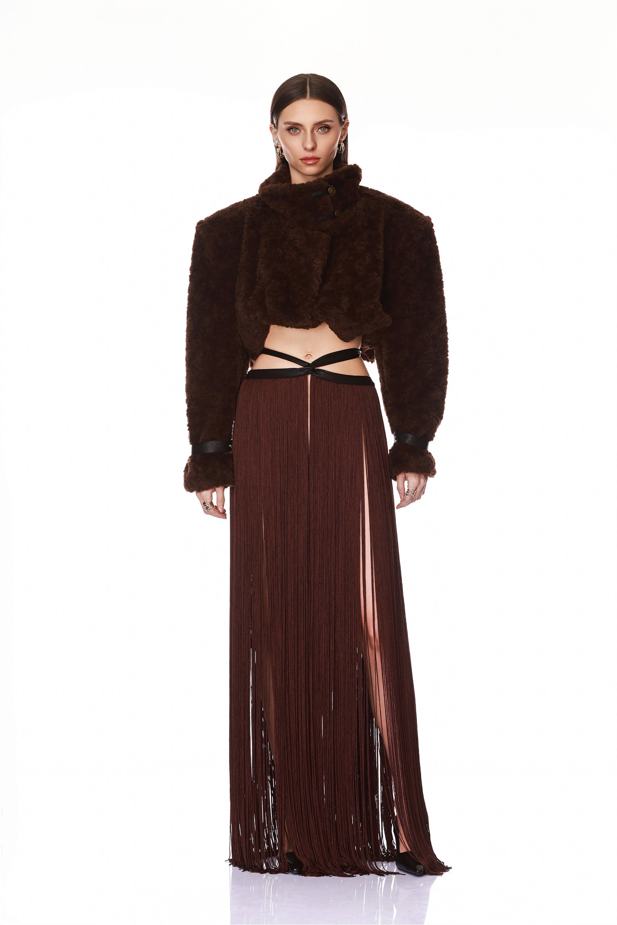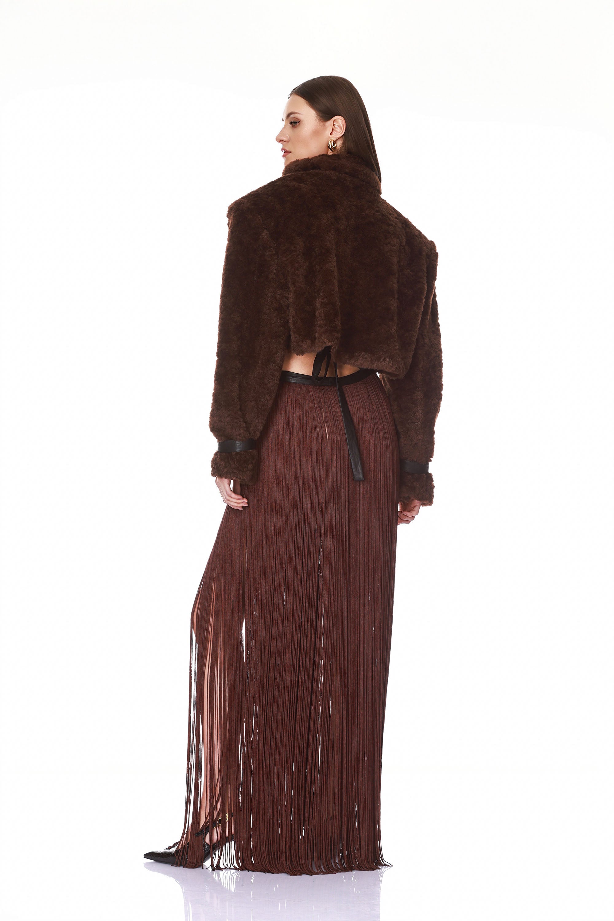 Look 11: Faux Mink Long Sleeve Jacket + Fringe Maxi Skirt