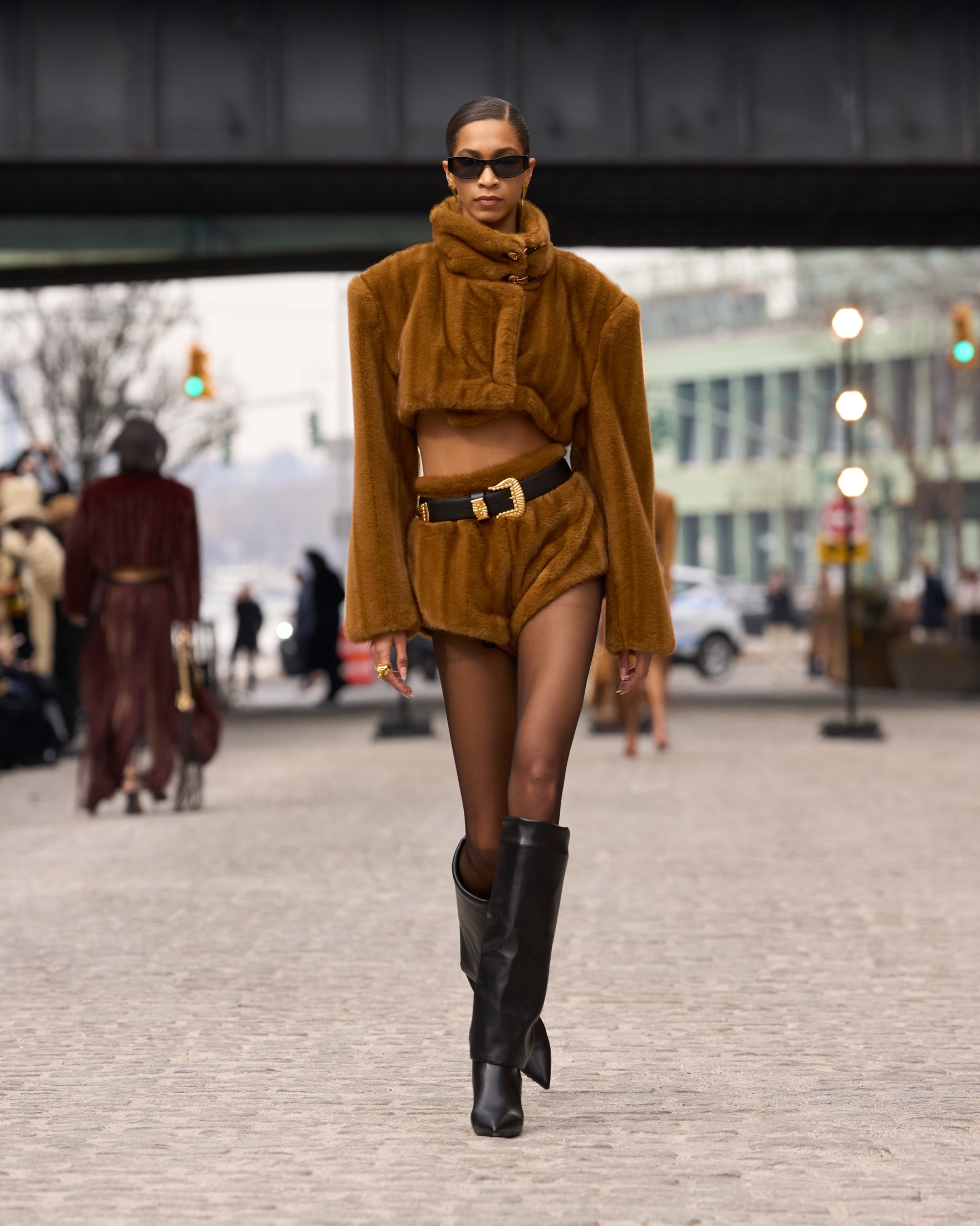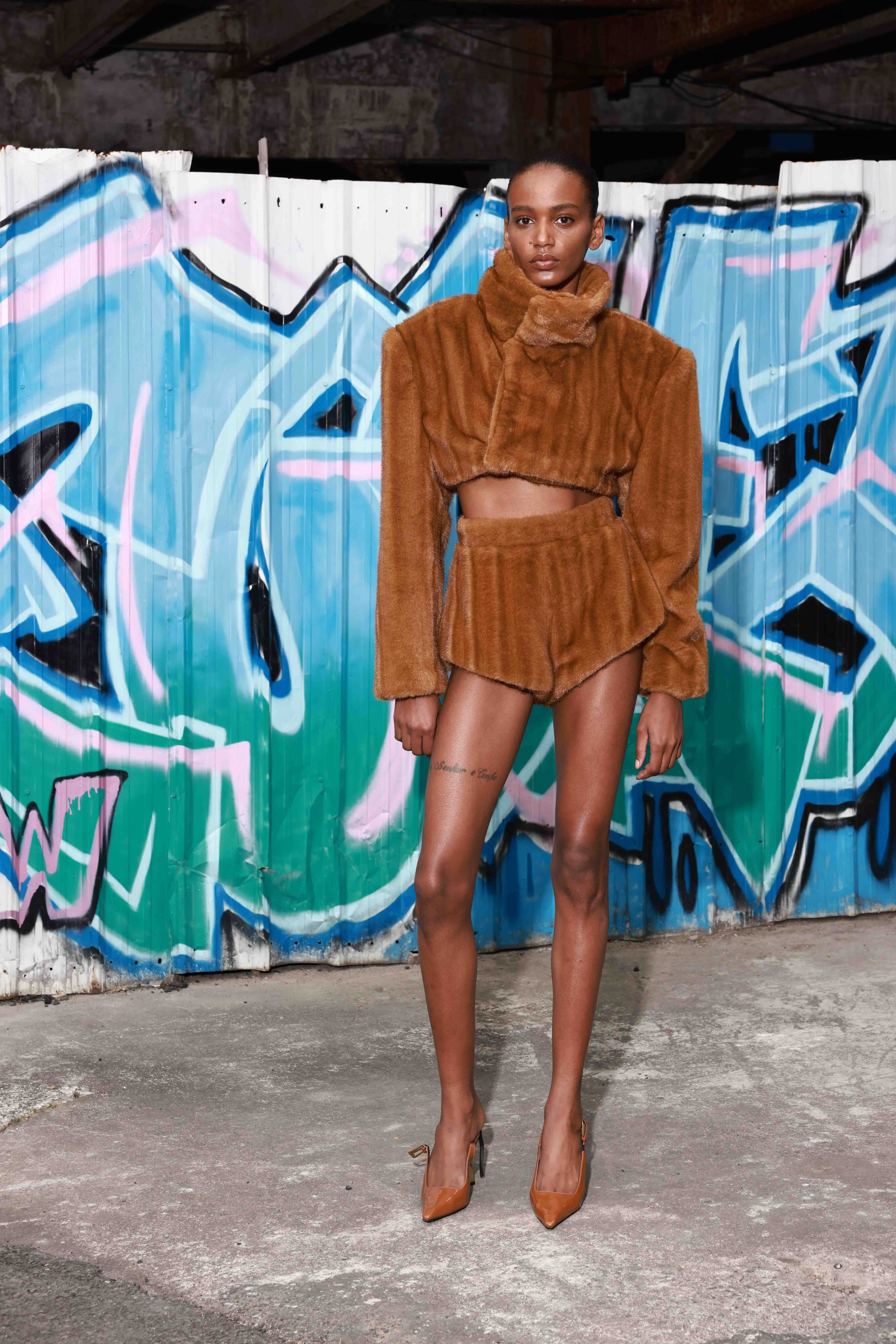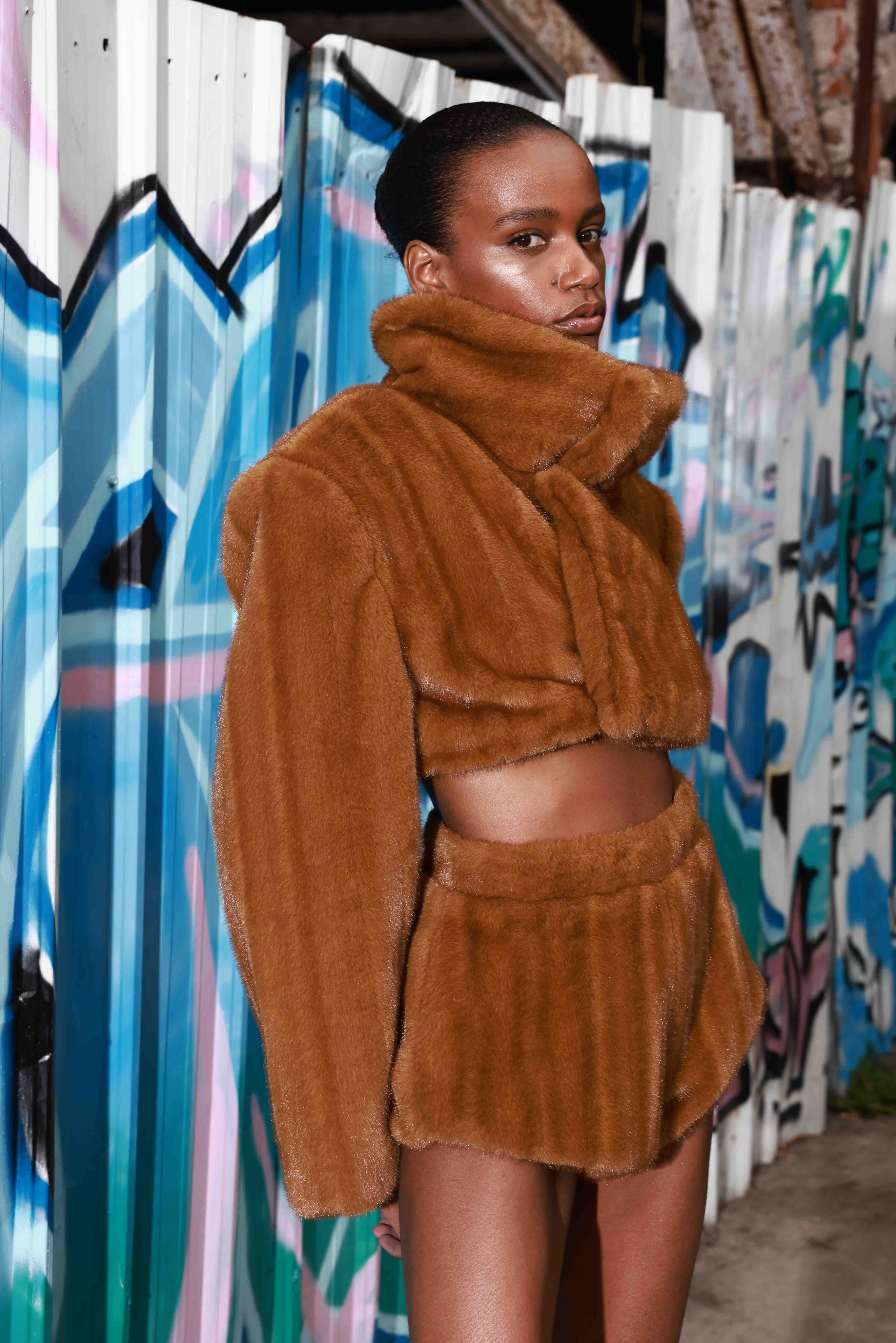 Look 9: Faux Mink Long Sleeve Cropped Jacket + Faux Mink Shorts