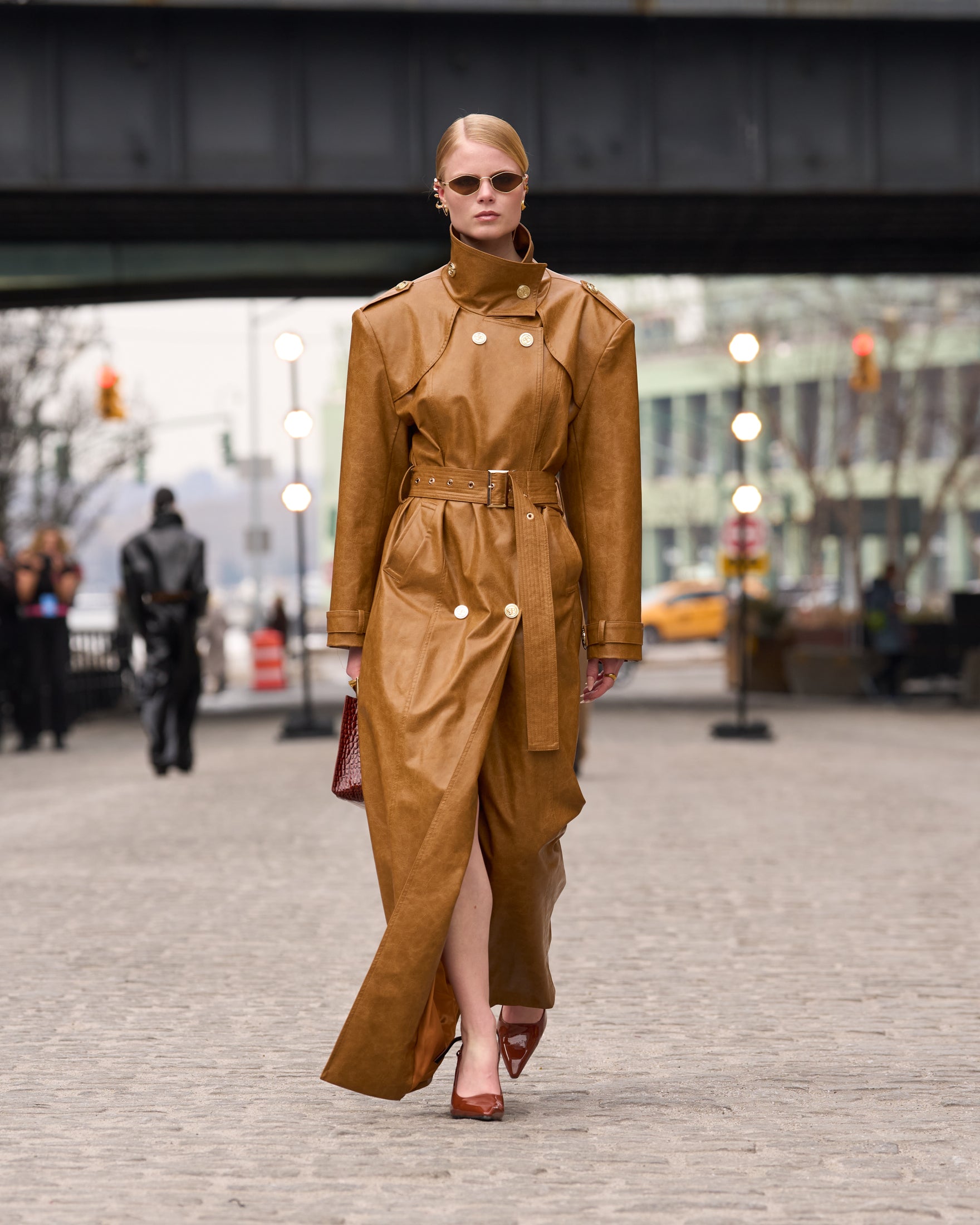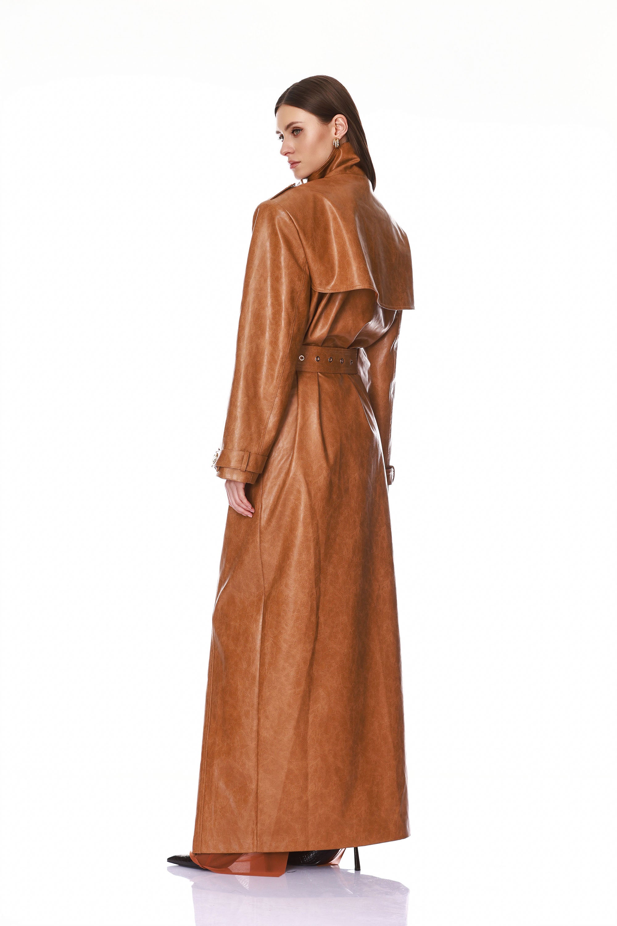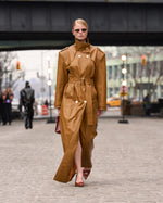 Look 6: Vegan Camel Leather Trench Coat