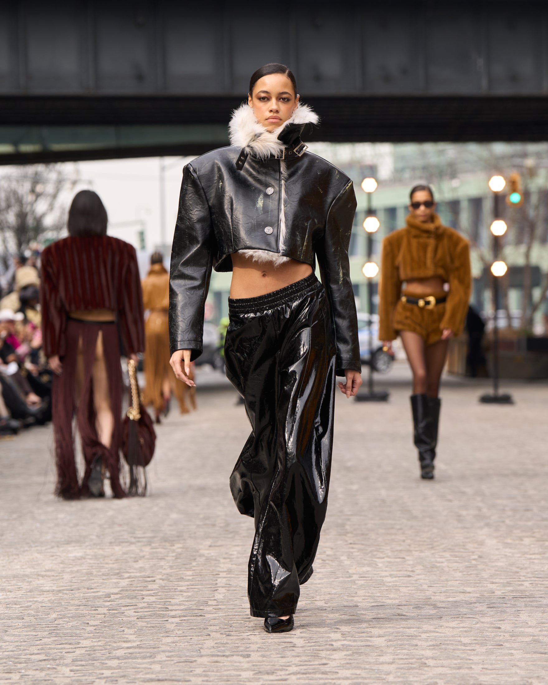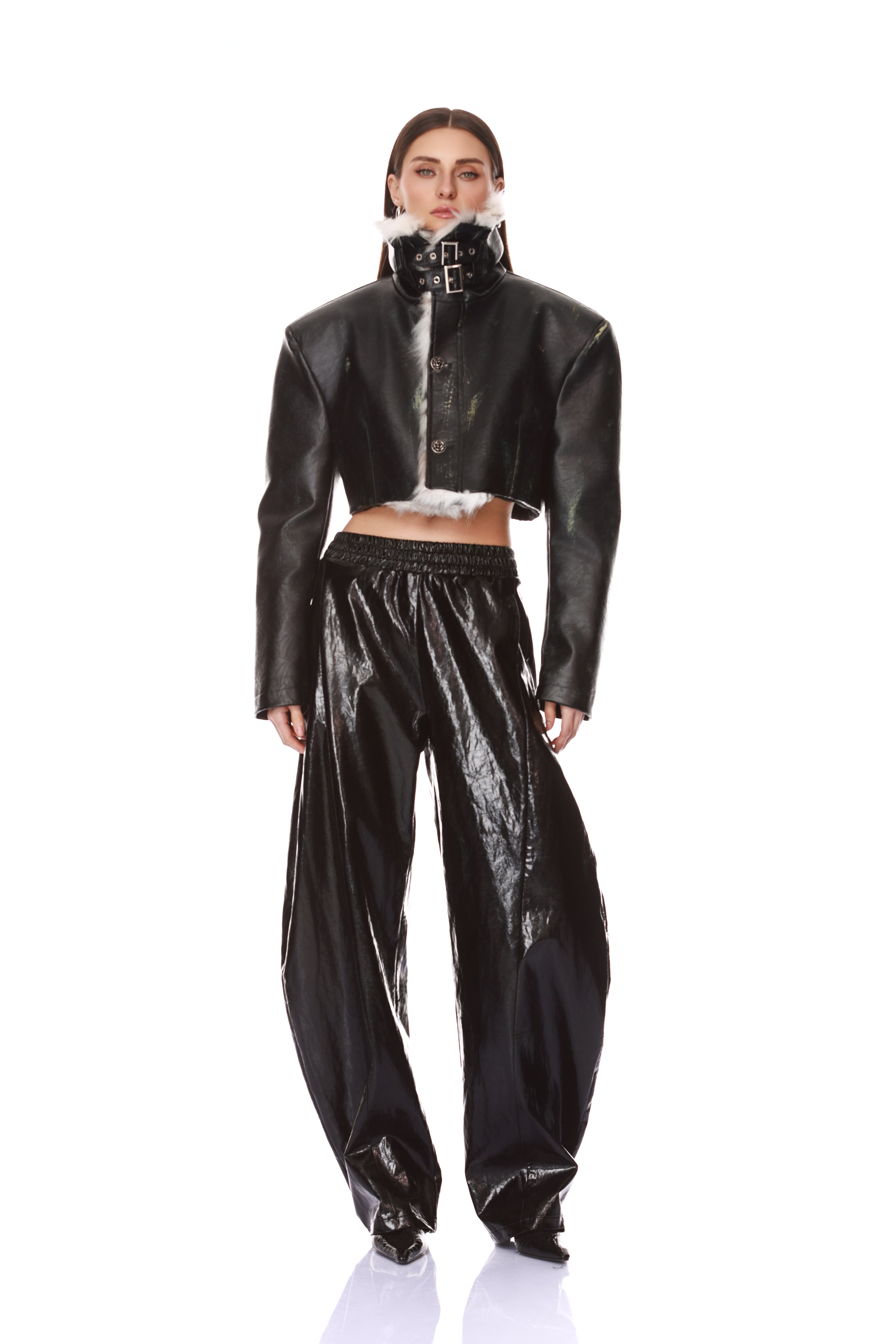 Look 8: Cropped Patent Jacket with Faux Fur Lining + Vegan Patent Leather Horseshoe Trouser