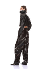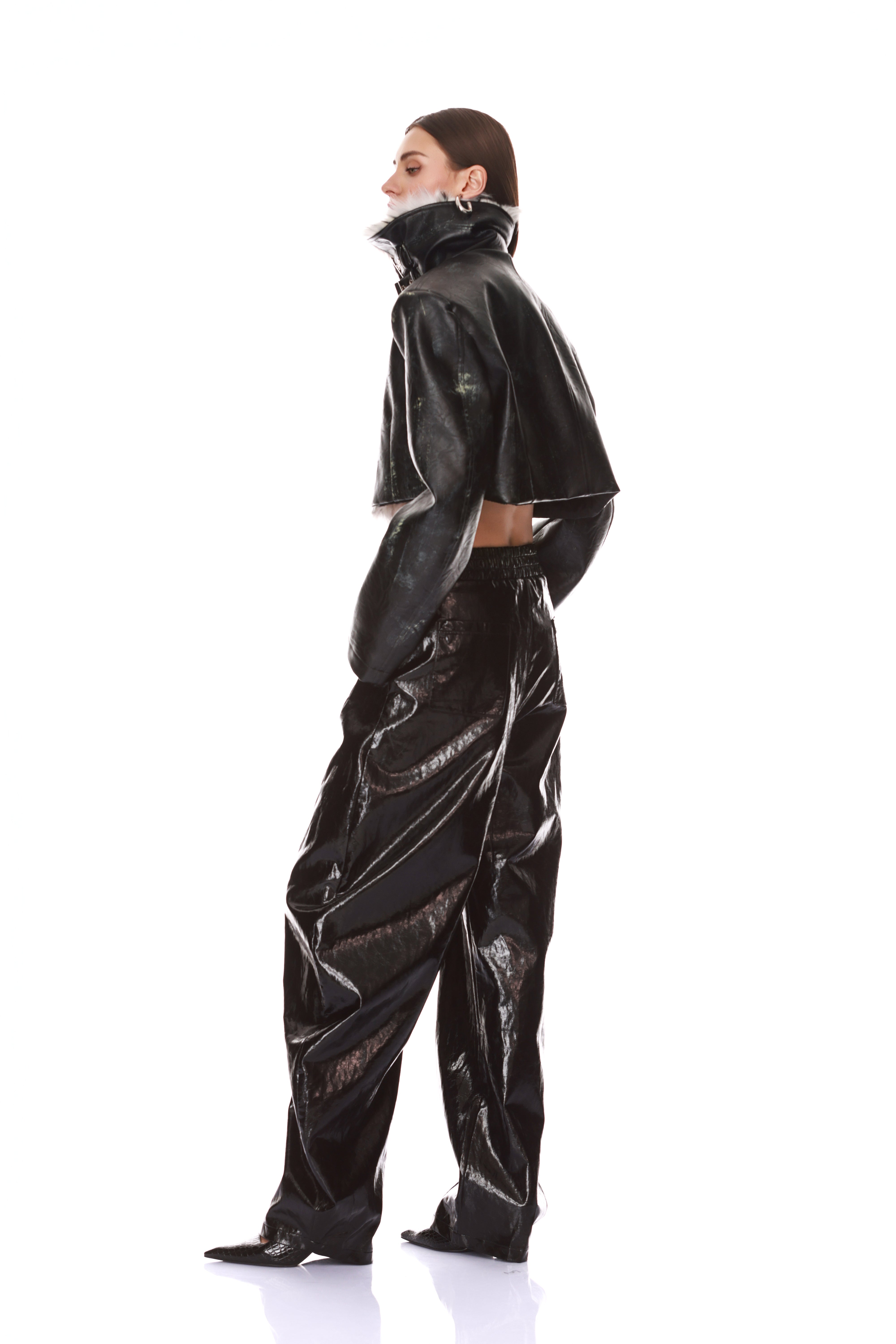 Vegan Patent Leather Horseshoe Trouser Look 8: Cropped Patent Jacket with Faux Fur Lining + Vegan Patent Leather Horseshoe Trouser