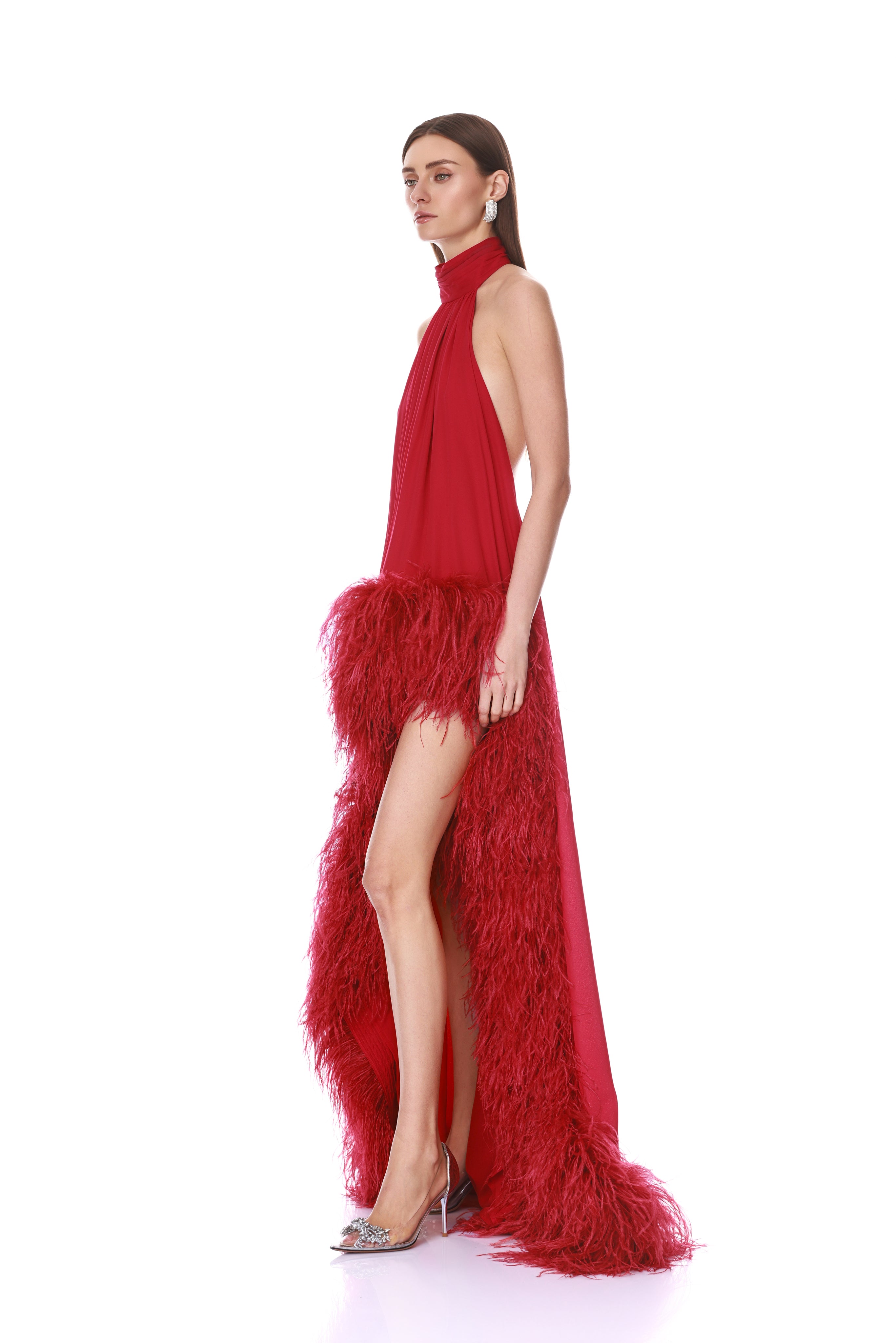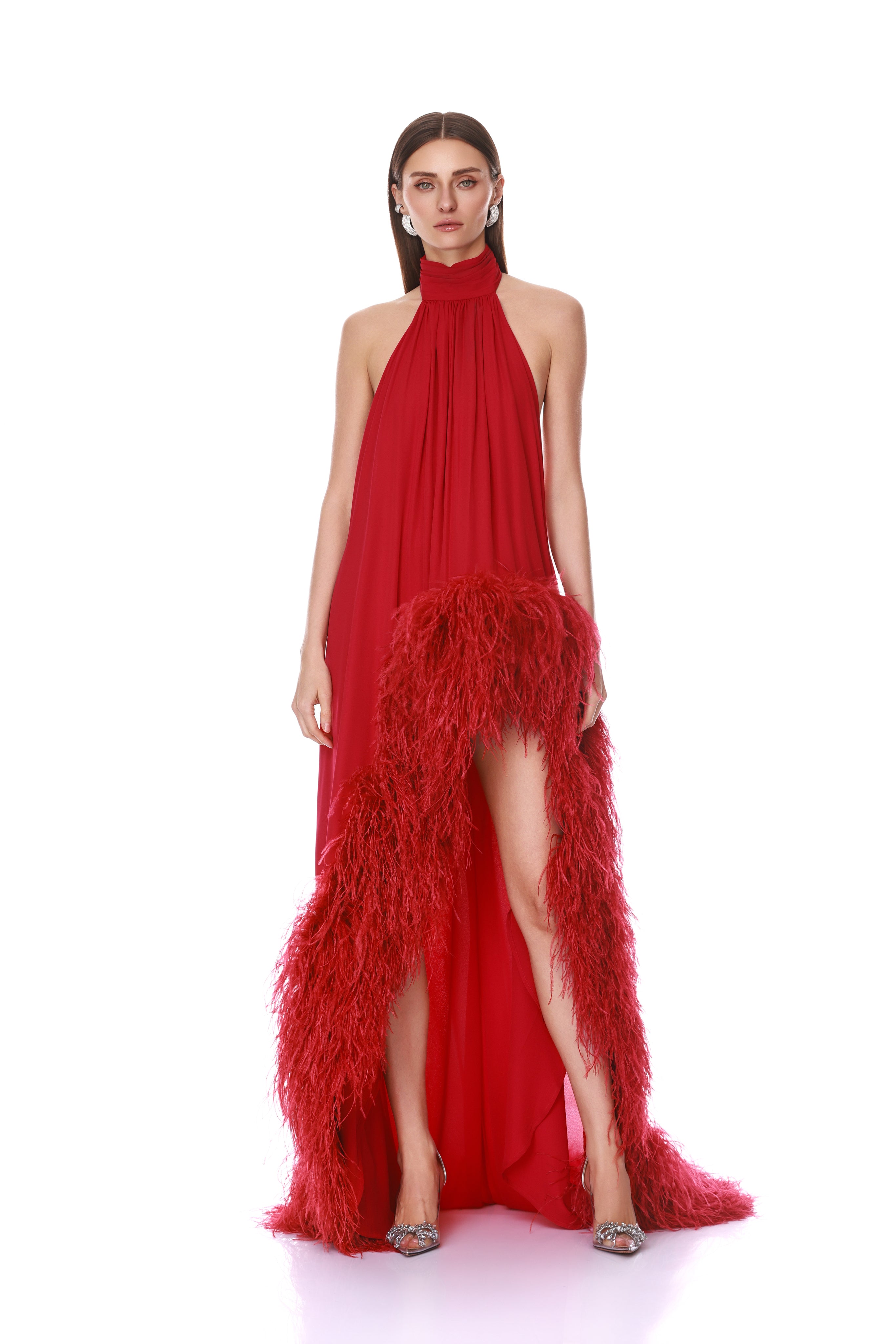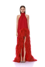 Drape yourself in opulence with our Madeline Red Halterneck Gown.