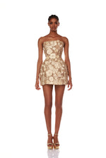 Embrace glamour and sophistication in our Jasmine Maraya Gold Mini Dress, it offers a flawless fit and irresistible charm for any special occasion.