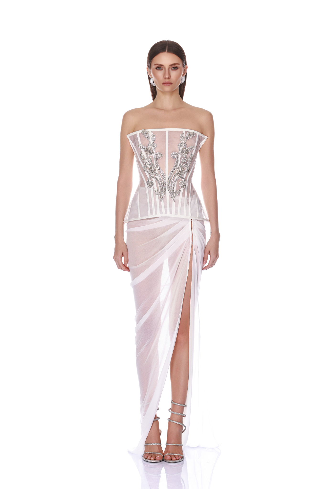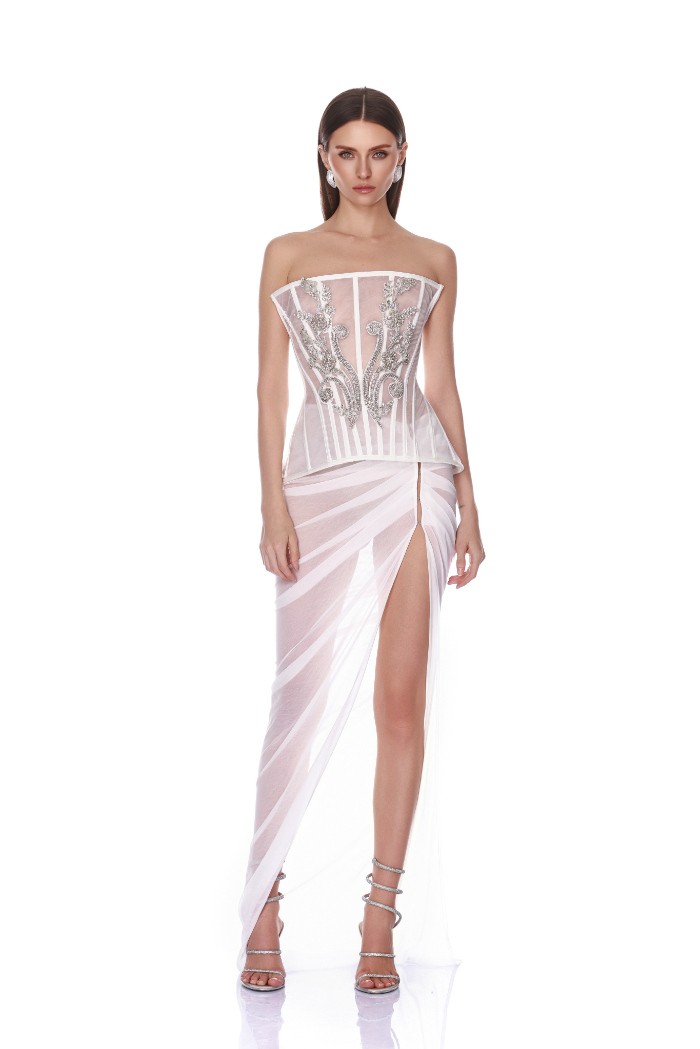 Elle Blanc Skirt + Gaia Blanc Mesh Bodysuit