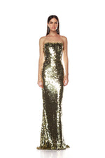 Farah Gold Sequin Strapless Gown