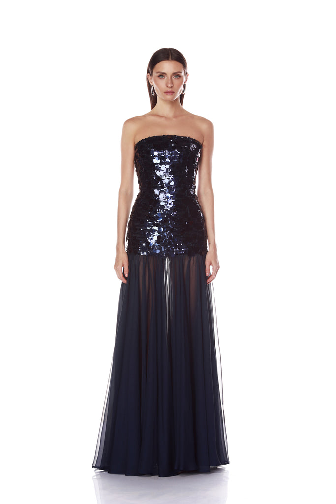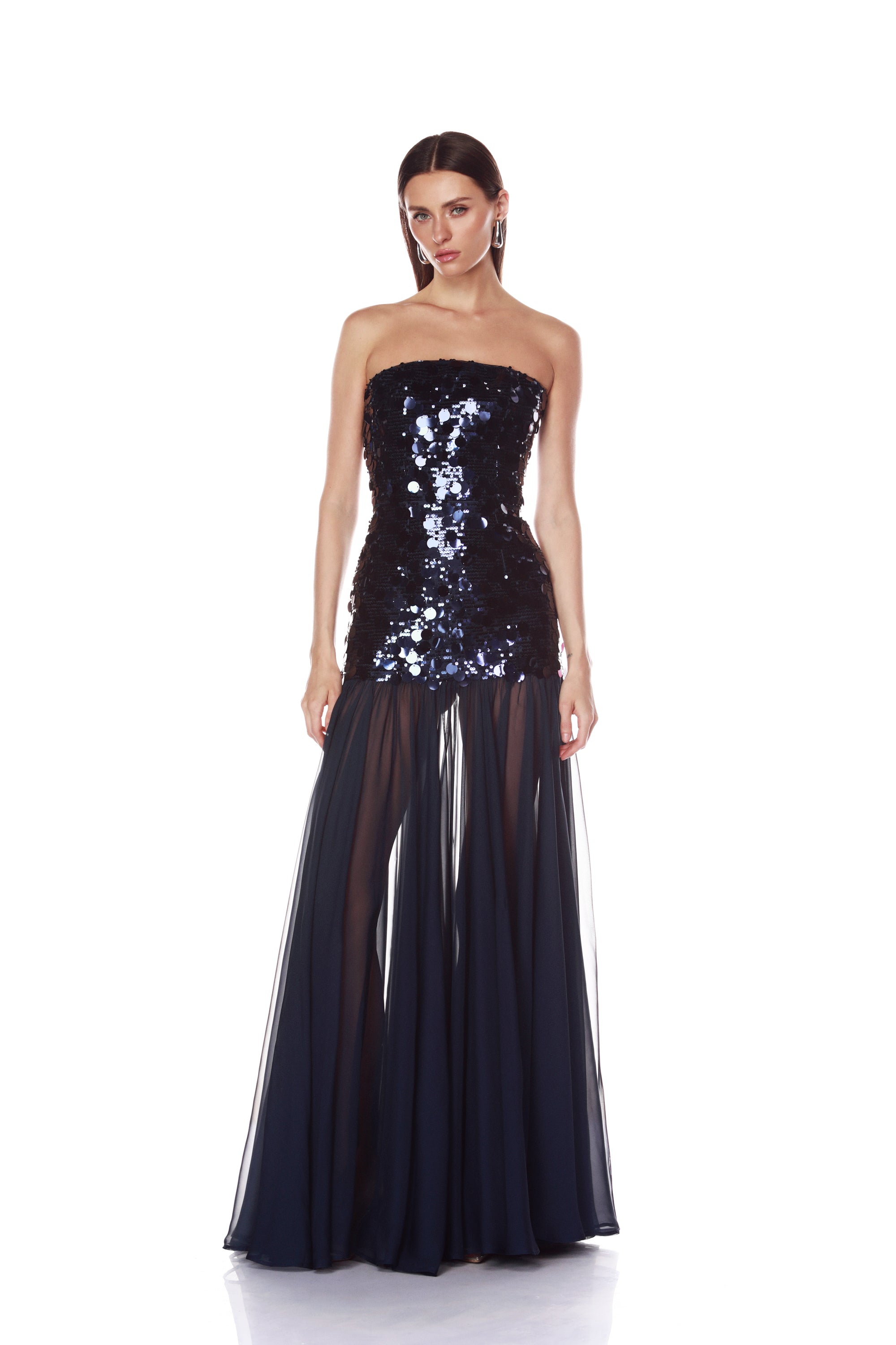 Dazzle in our Marni Navy Strapless Maxi Dress, the epitome of glamour and sophistication.