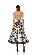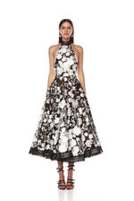 Greta Bouquet Black and White Midi Dress