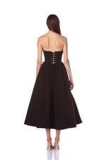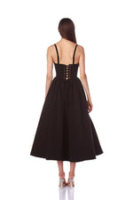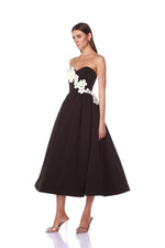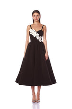 The Inara Black & White Midi Dress features delicate floral appliqué that adds a romantic touch. The perfect balance of elegance and femininity.