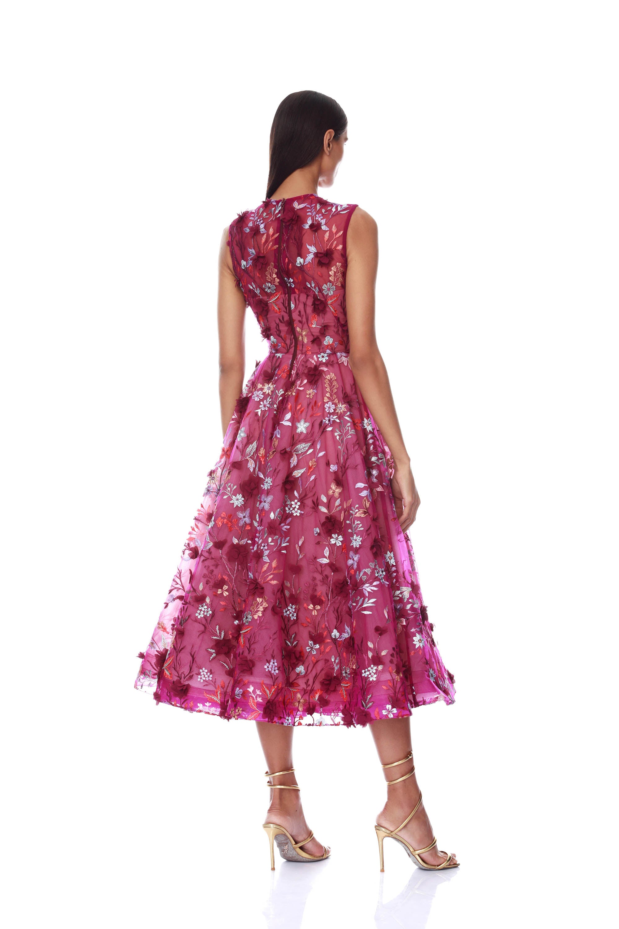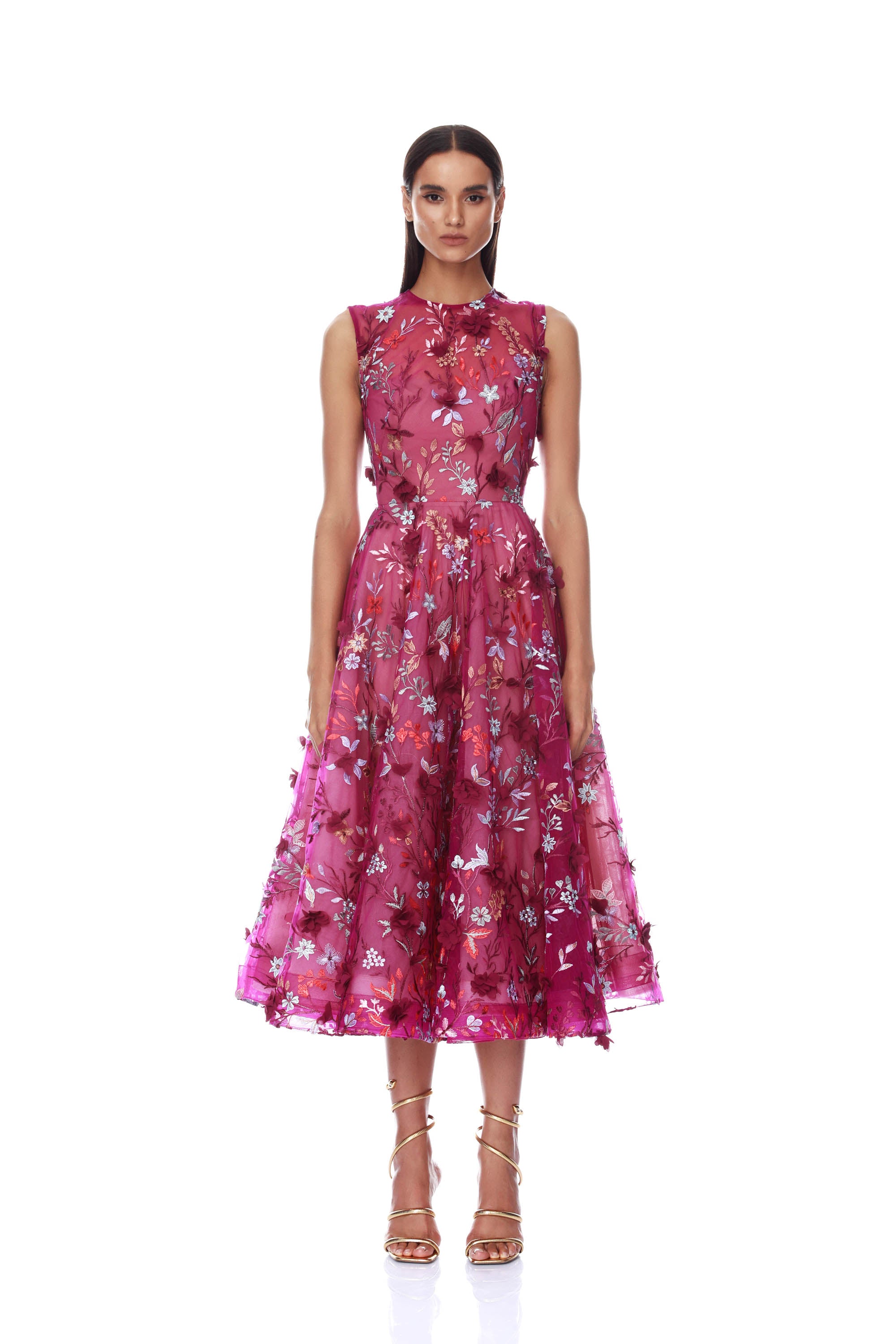 Mademoiselle Embroidered Gold Floral Midi Dress