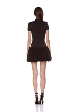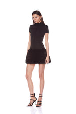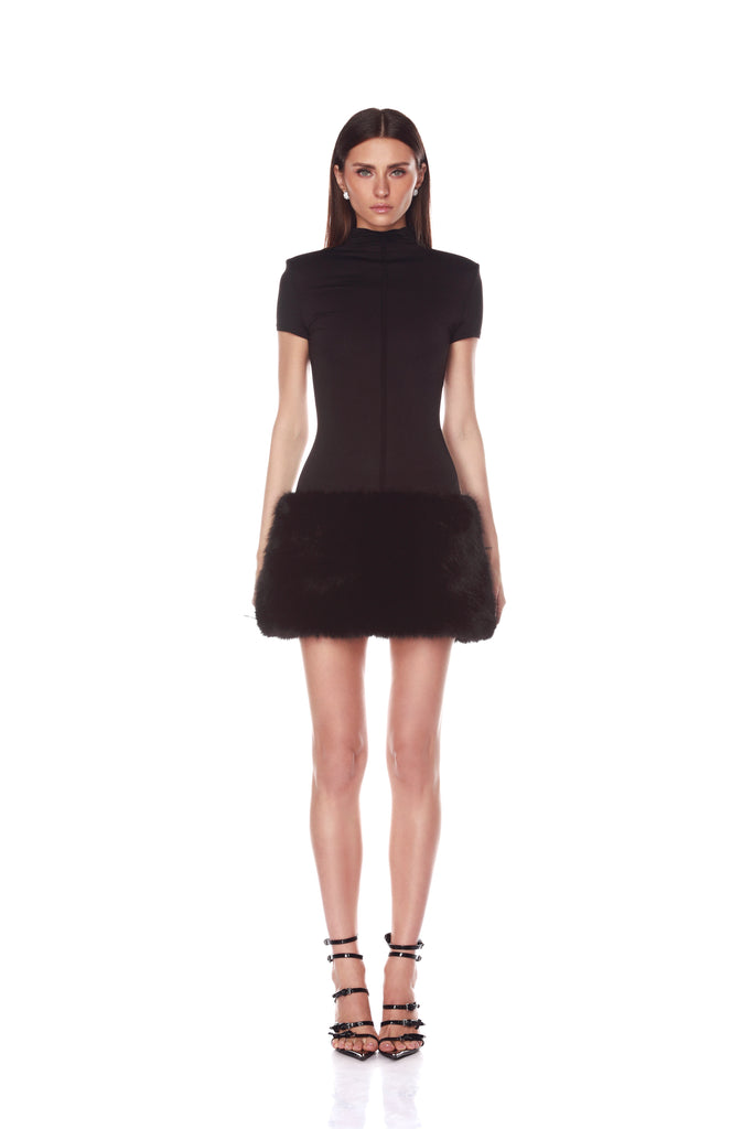 Stand out in the Eleanor Black Mini Dress. With a bold silhouette and fur trim, this is sure to turn heads.