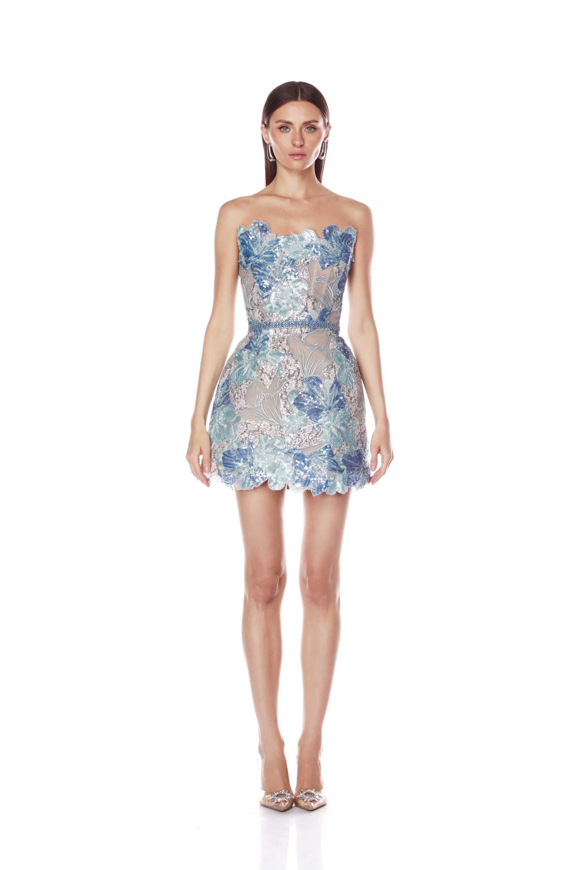 Embrace glamour and sophistication in our Jasmine Maraya Embellished Blue Mini Dress, it offers a flawless fit and irresistible charm for any special occasion.