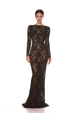 Introducing the Colette Noir Lace Gown, the epitome of sophisticated charm.