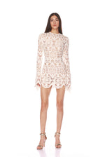 Channel effortless charm in the Marley White Crochet Mini Dress, showcasing intricate crochet patterns and a playful silhouette that's perfect for sunny days and warm nights.