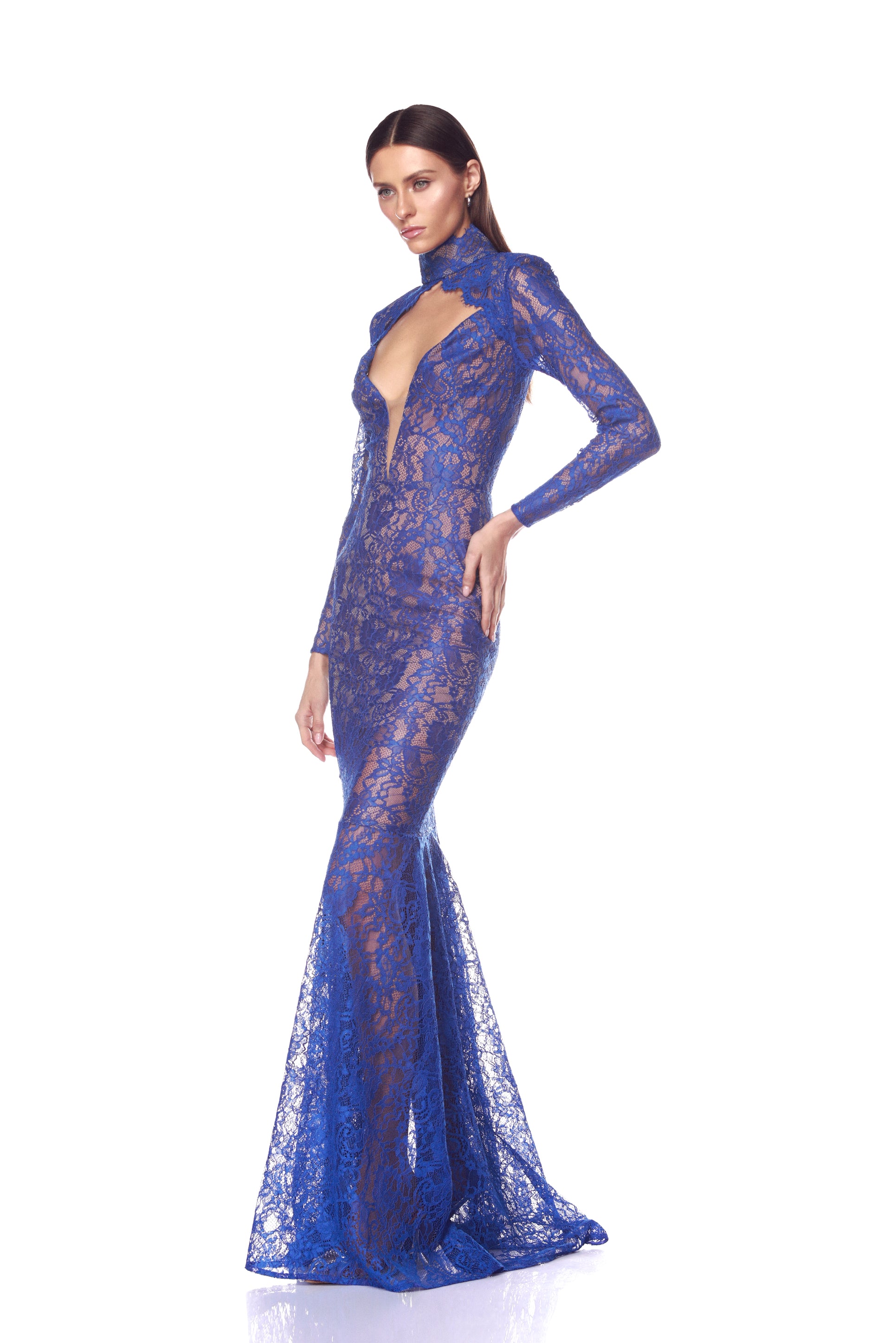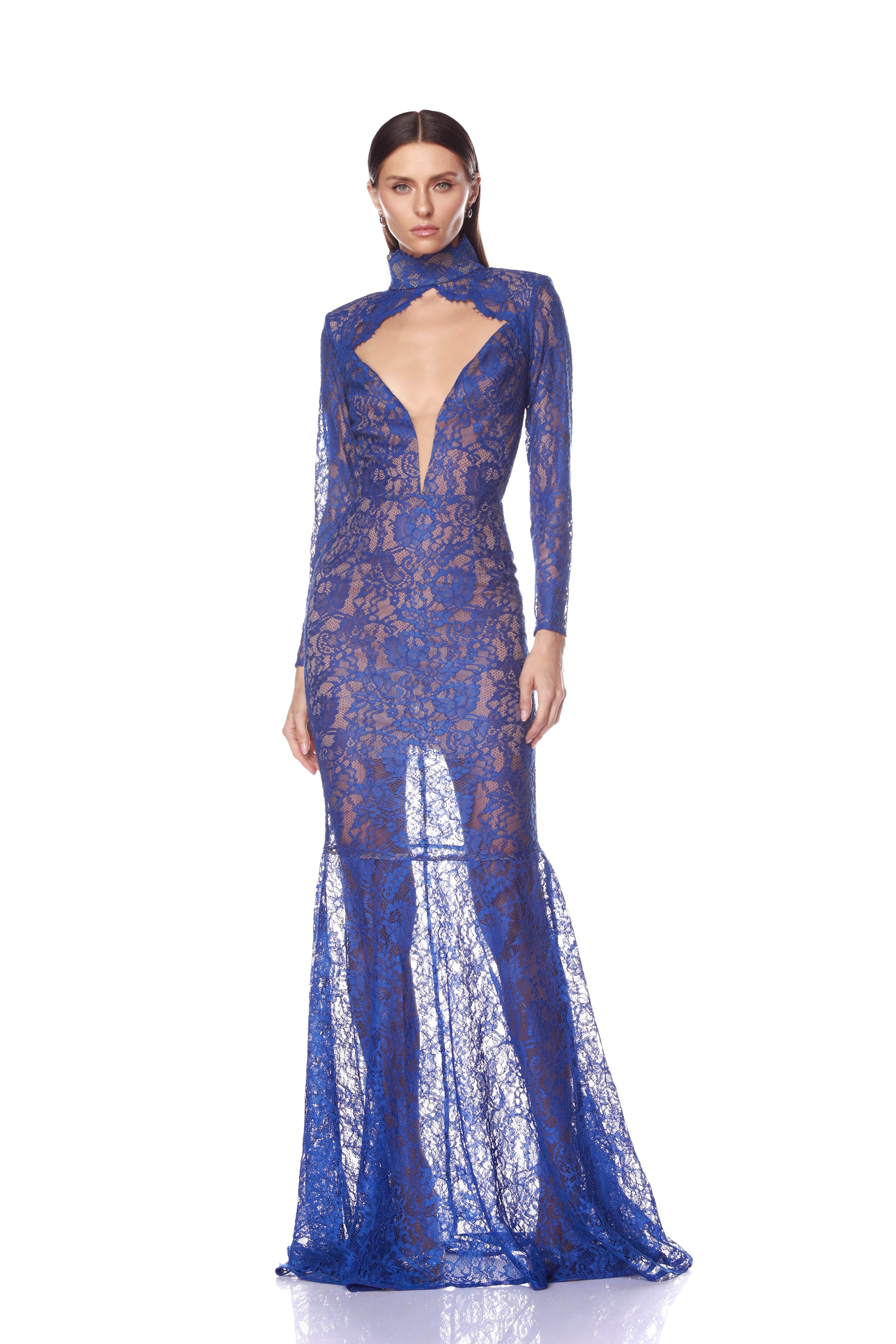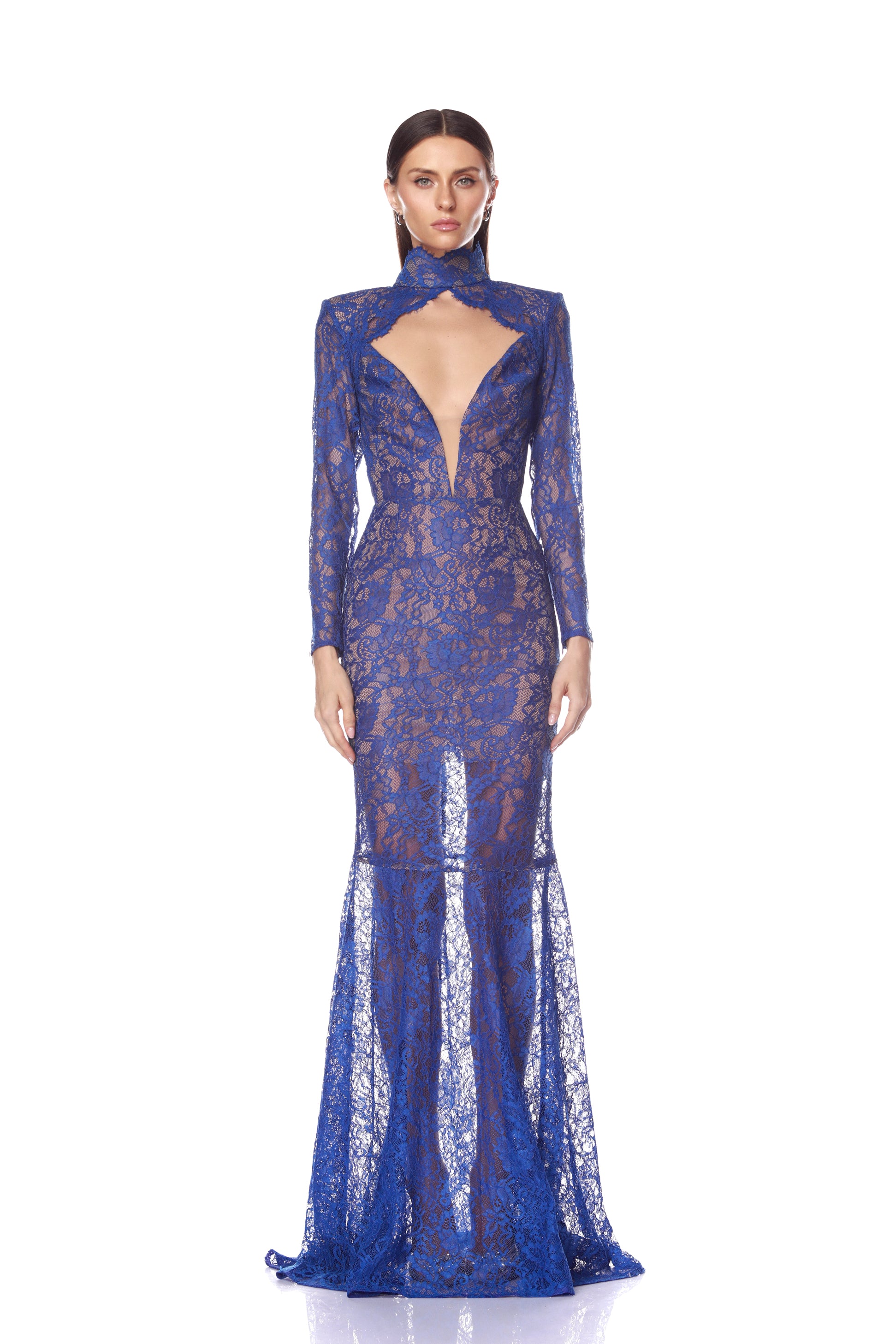 Camila Powder Blue Rhinestone Cutout Dress with Slit - SAMPLE