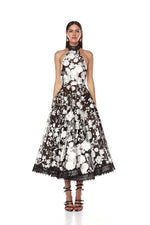 Greta Bouquet Black and White Midi Dress - SAMPLE