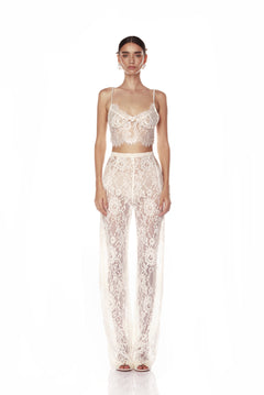 Achieve effortless elegance in our Capri Blanc Lace Pant, adding a sophisticated touch to any outfit.