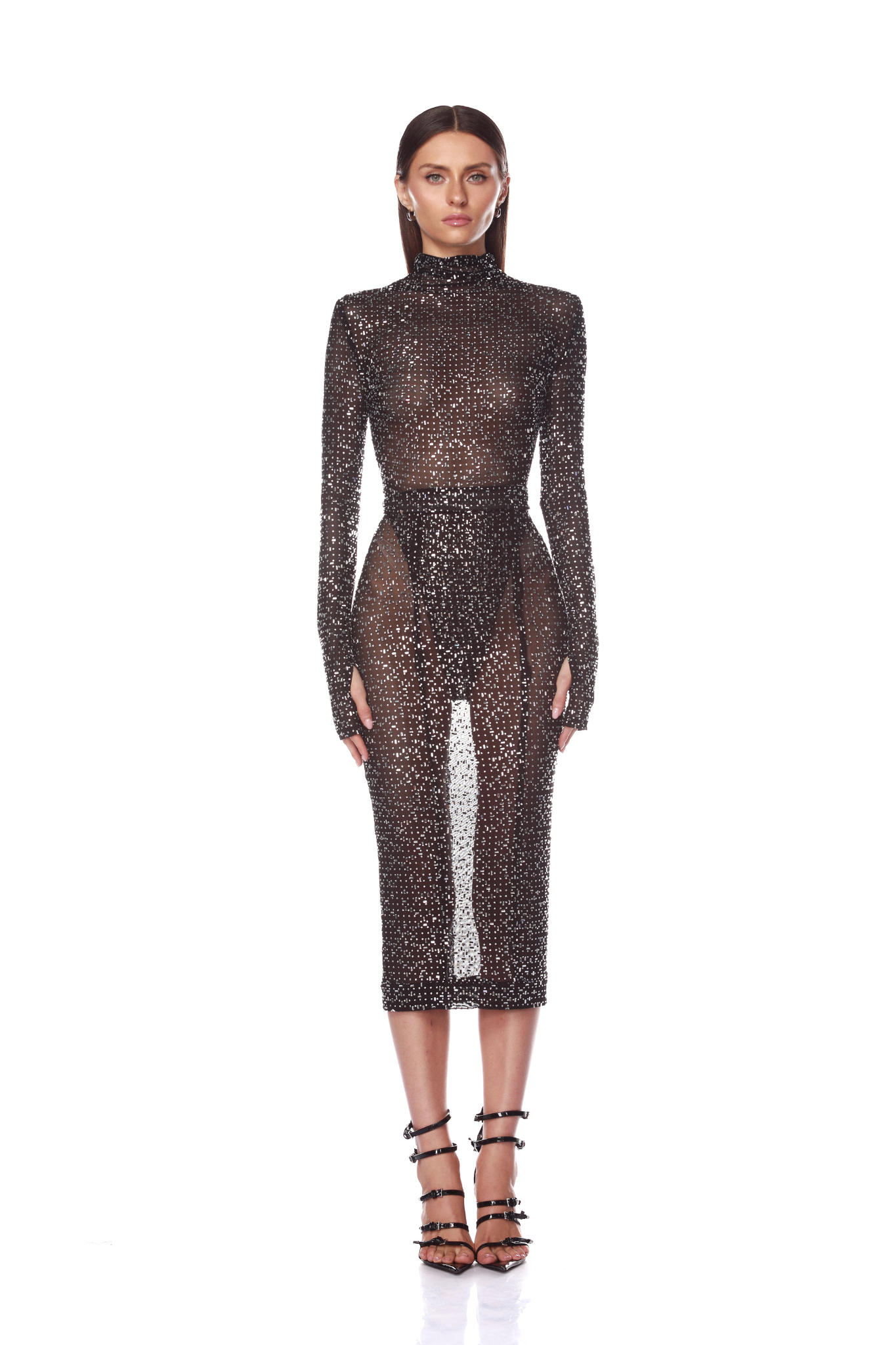Leave an impression in the Miller Black Skirt. Finished with a eye-catching rhinestones and a bodycon fit.