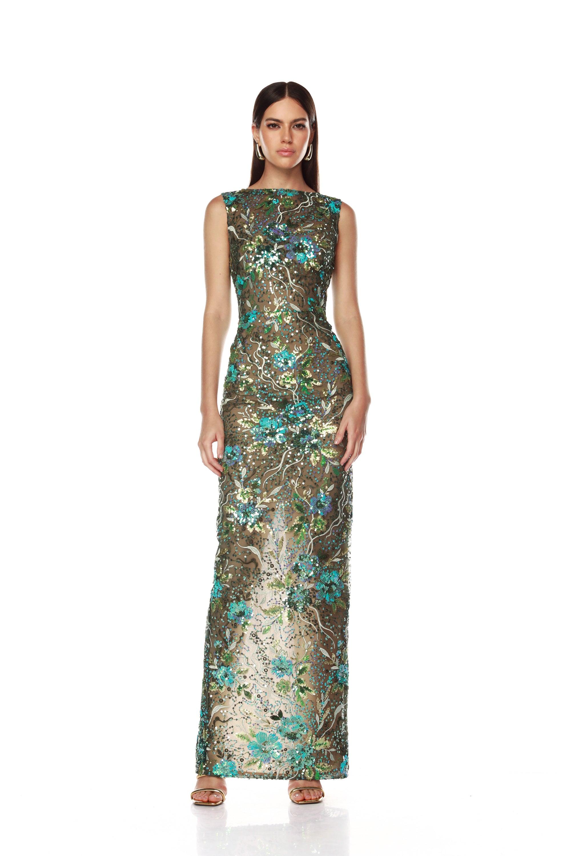 Make an entrance in the Violet Teal Maxi Dress—sleek, shimmering, and show-stopping.
