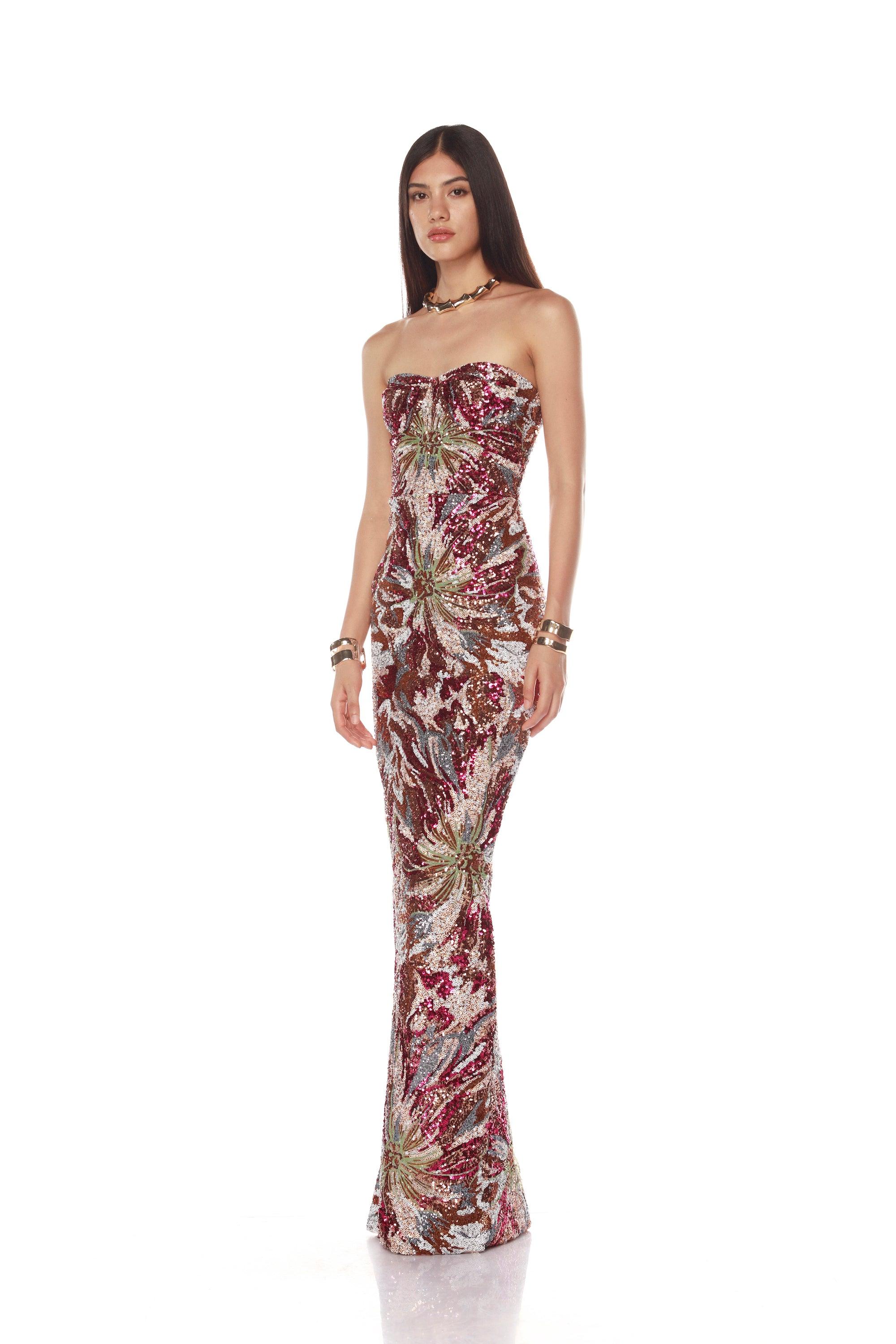 Embrace vibrant elegance in our Dahlia Fuchsia Multi Maxi Dress, featuring a stunning blend of colors and a flowing silhouette perfect for any special occasion.