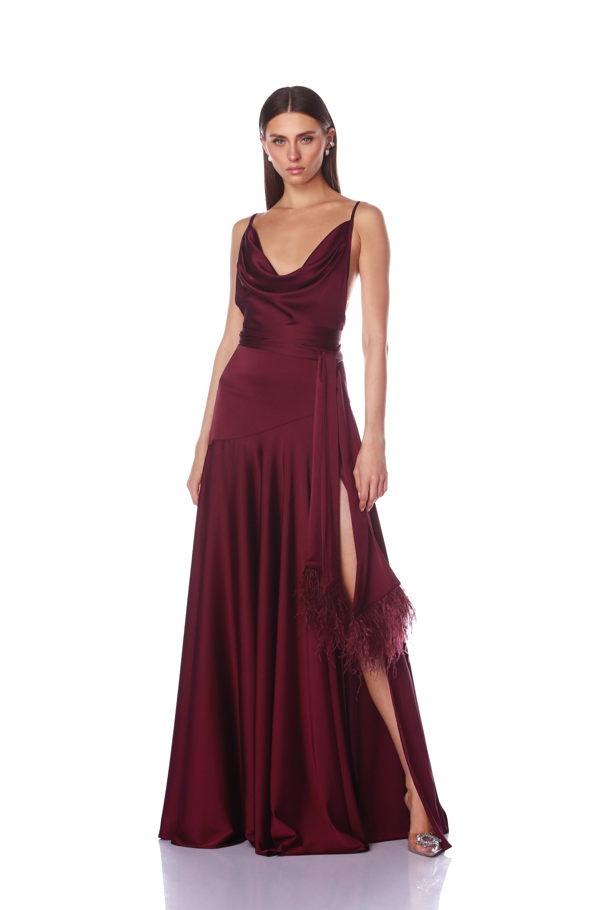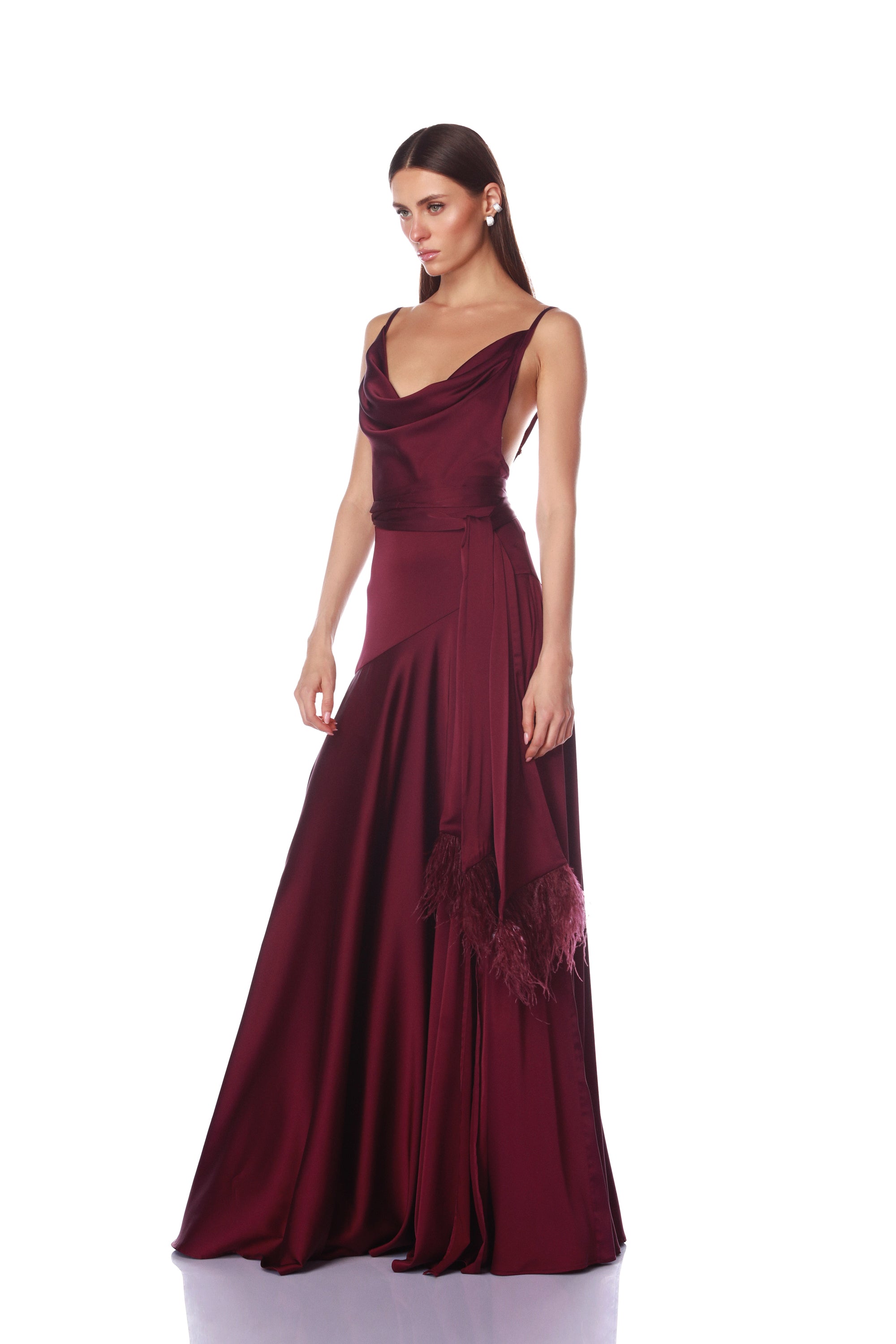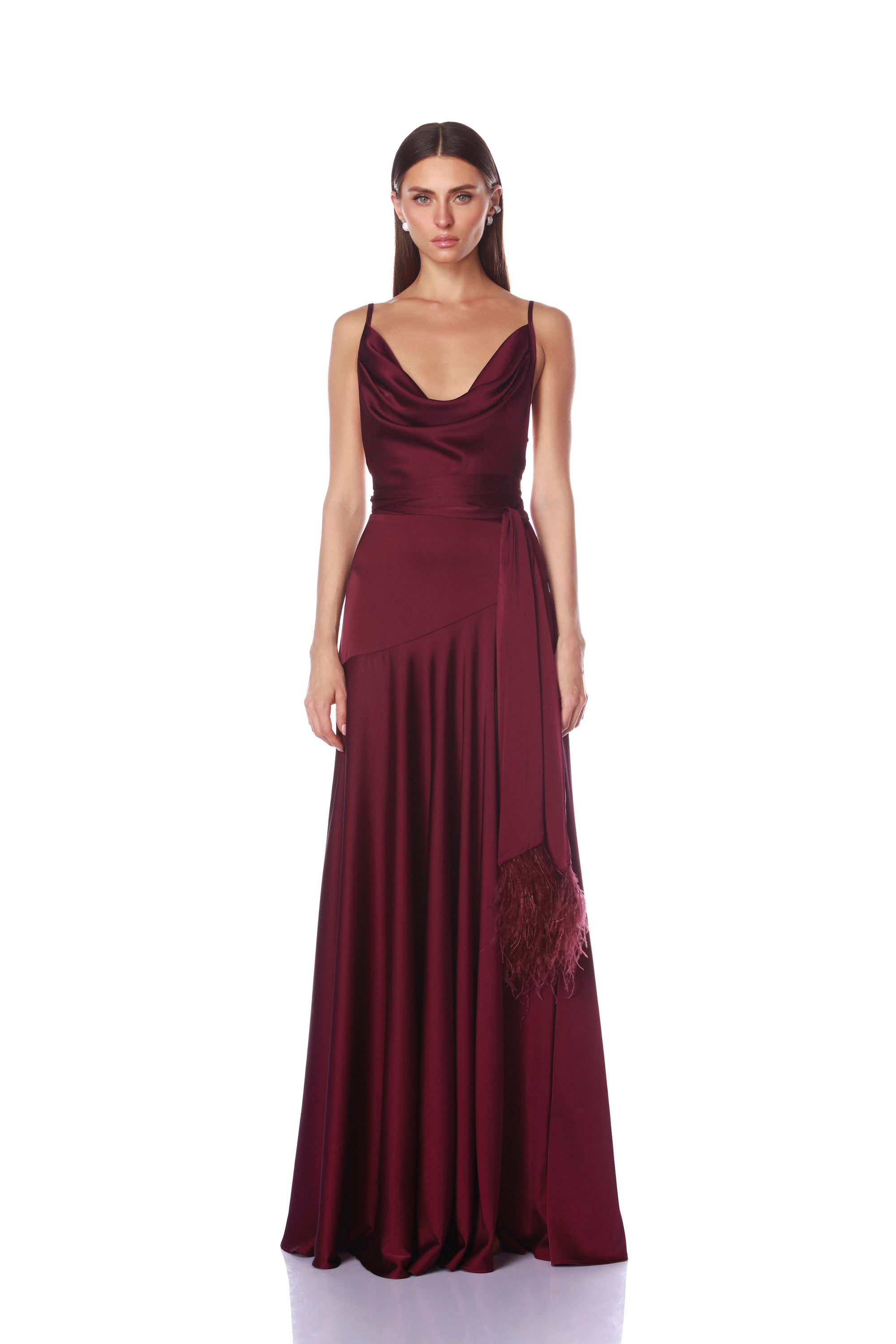 Radiate elegance in our Leo Burgundy Gown, a stunning piece that combines deep hues with a flowing silhouette for a romantic look.