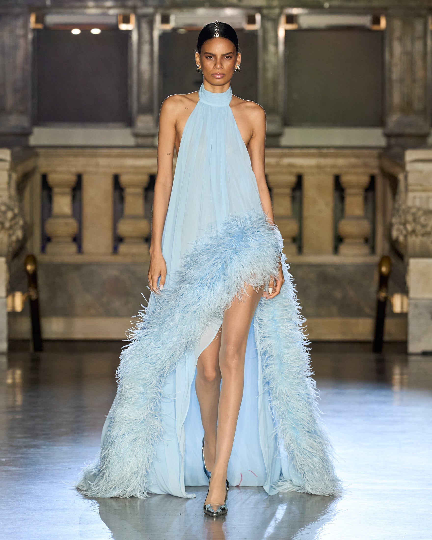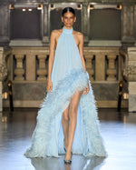 Drape yourself in opulence with our Madeline Powder Blue Halterneck Gown.