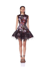 The Mia Purple Multi Mini Dress channels playful femininity with vibrant floral embroidery, shimmering sequins, and a flattering A-line silhouette.