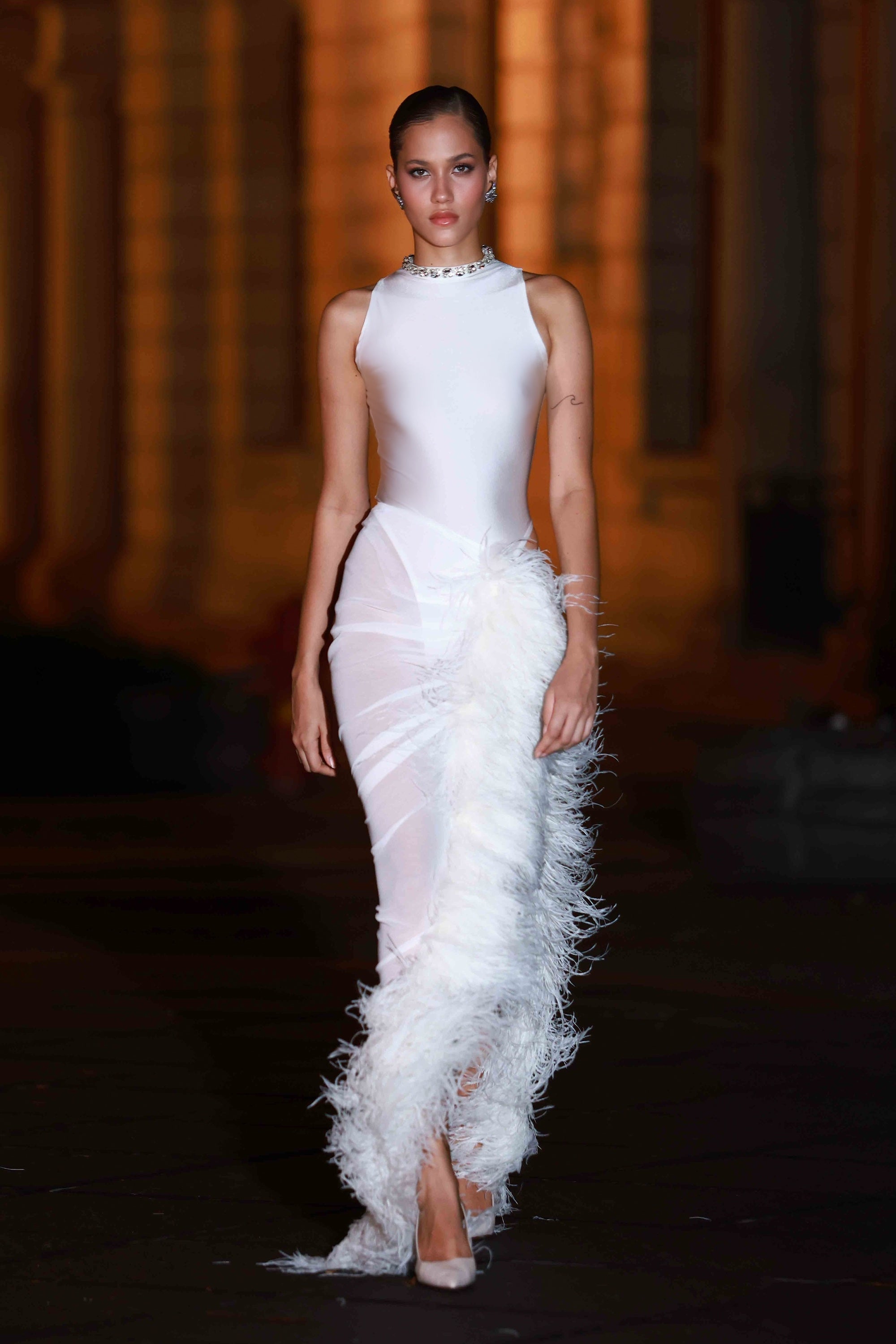 Elle Blanc Skirt + Gaia Blanc Mesh Bodysuit