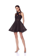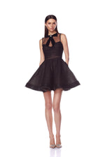 Elegance meets playful charm in the Charlotte Black Mini Dress, a modern silhouette with feminine detailing.