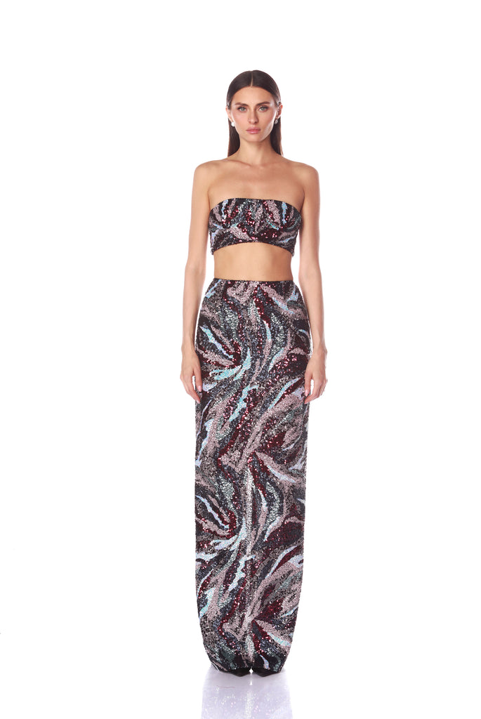 Step into elegance with our Dahlia Pink Multi Maxi Set, a timeless ensemble perfect for any special occasion.