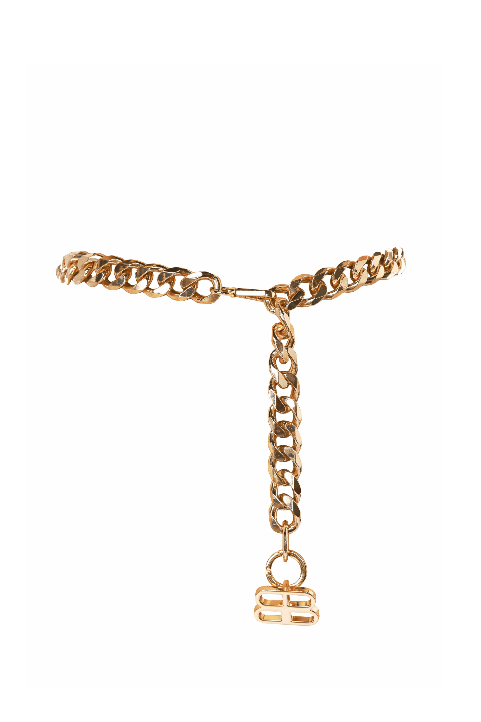 The perfect finishing touch for any look, the Jafari Gold Chain Belt features a dropped chain and BB logo.