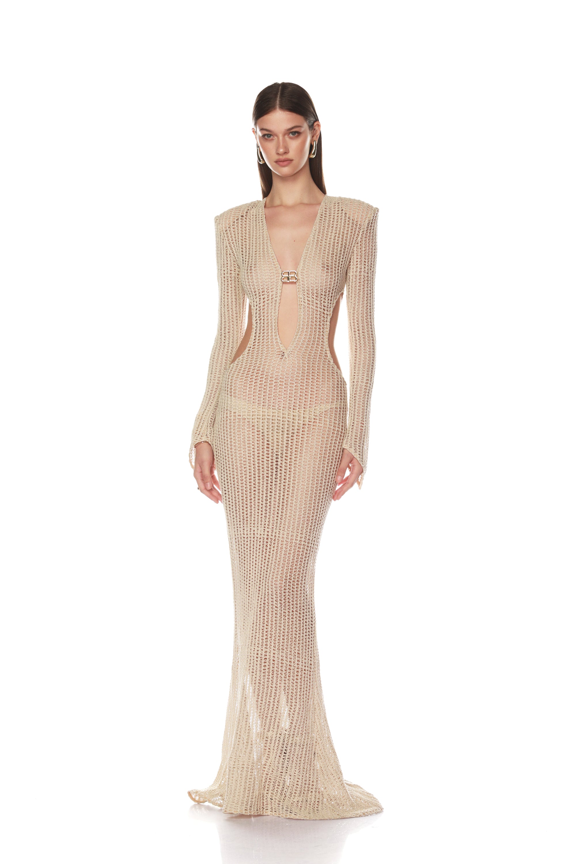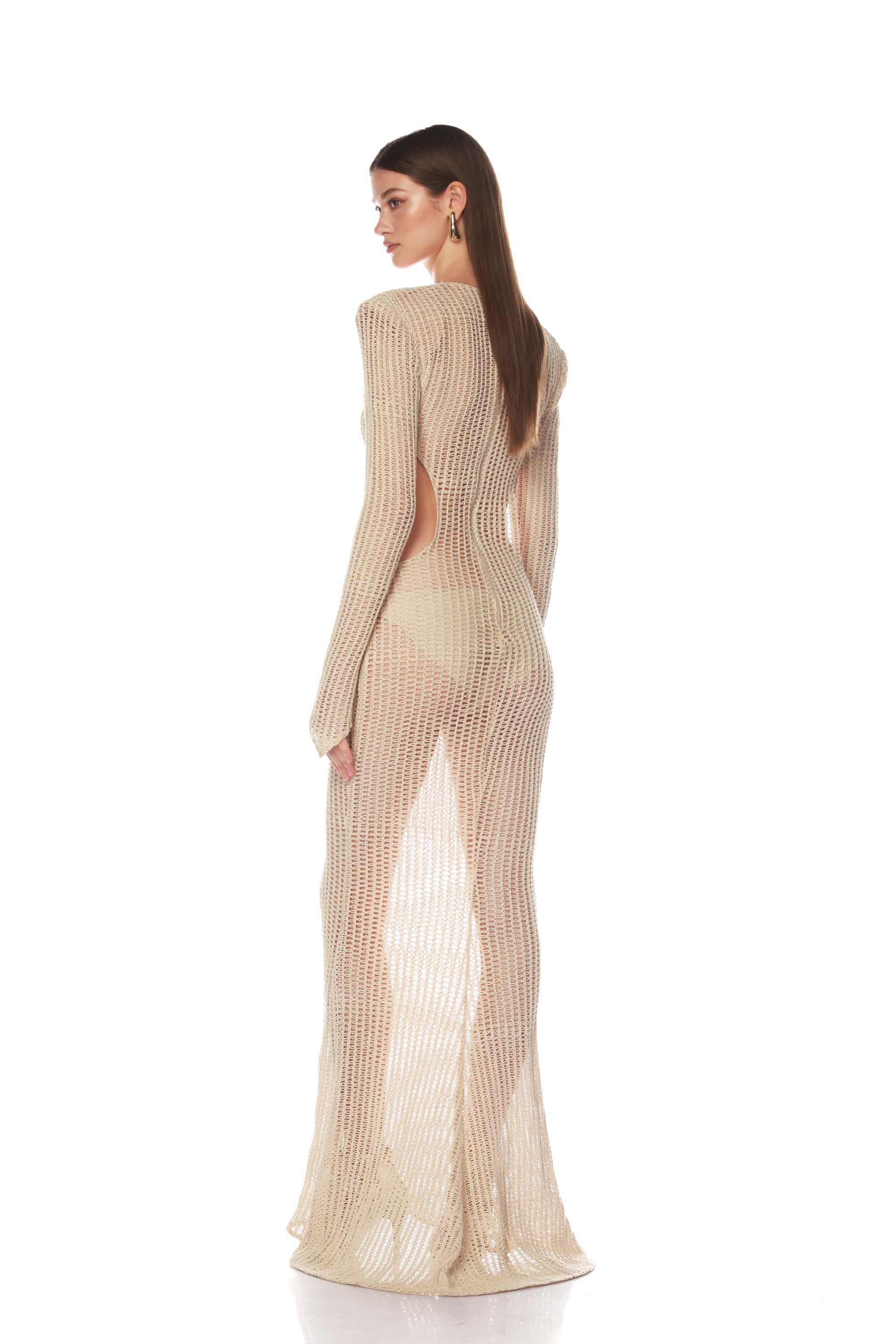 Make a statement in our Talia Desert Crochet Gown, a beautifully crafted piece that combines intricate detailing with a flowing silhouette for unforgettable elegance.