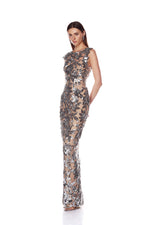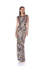 Make an entrance in the Violet Dark Silver Maxi Dress—sleek, shimmering, and show-stopping.